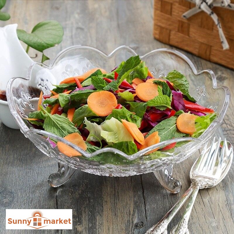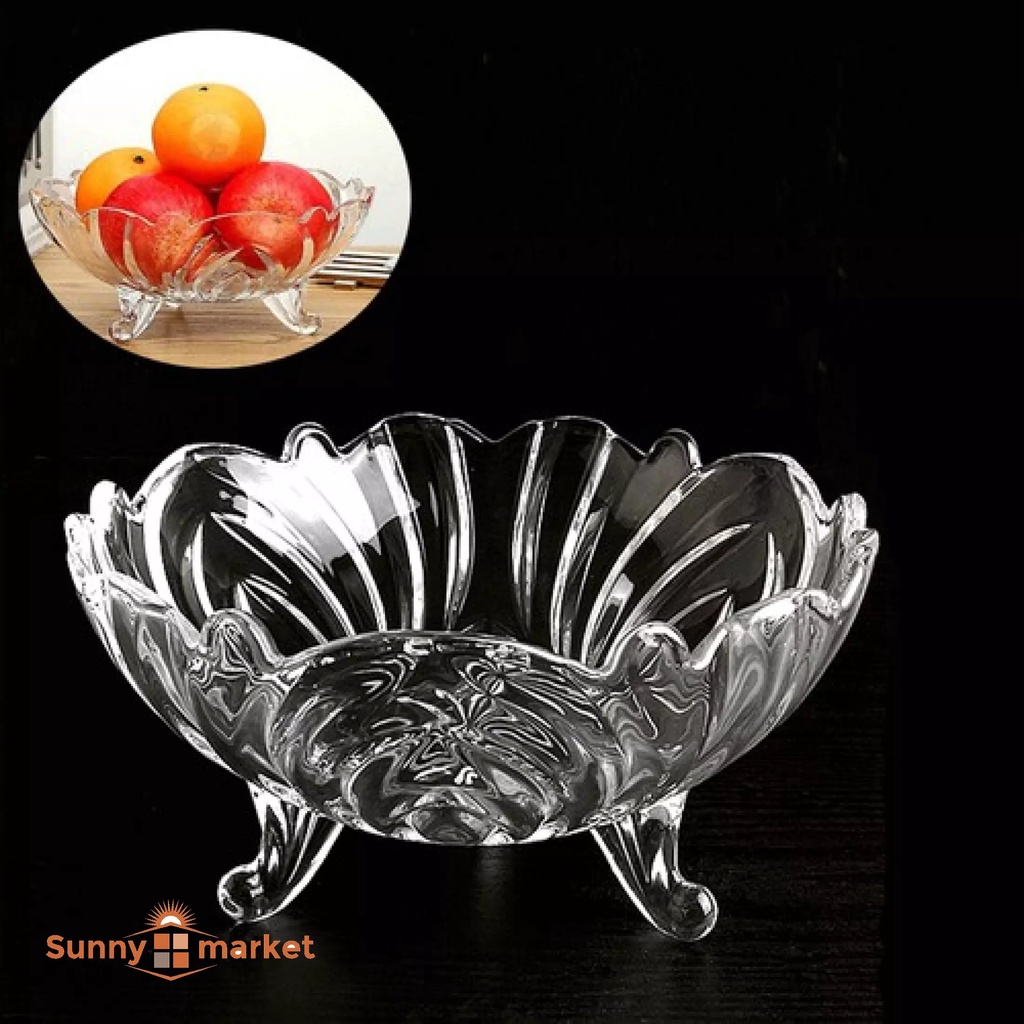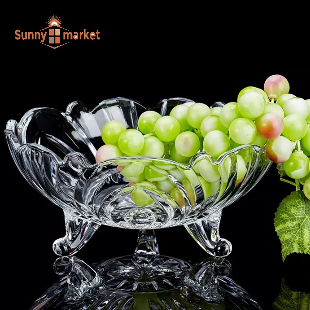 Nhà cửa & Đời sống > Bộ đồ bàn ăn > Dĩa || Khay thủy tinh 3 chân đựng hoa quả, Dĩa thủy tinh pha lê 3 chân đựng trái cây sang trọngCòn hàng