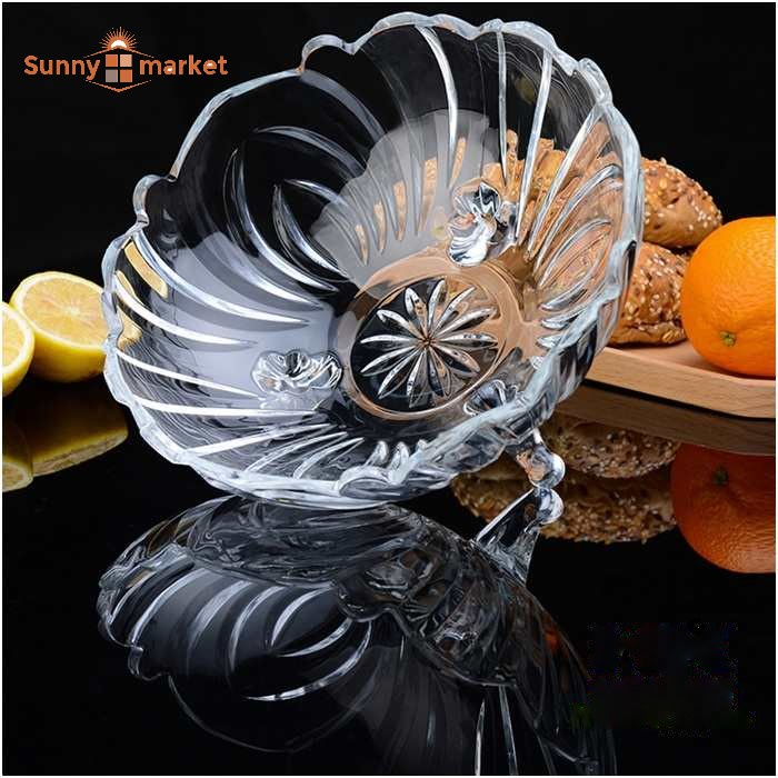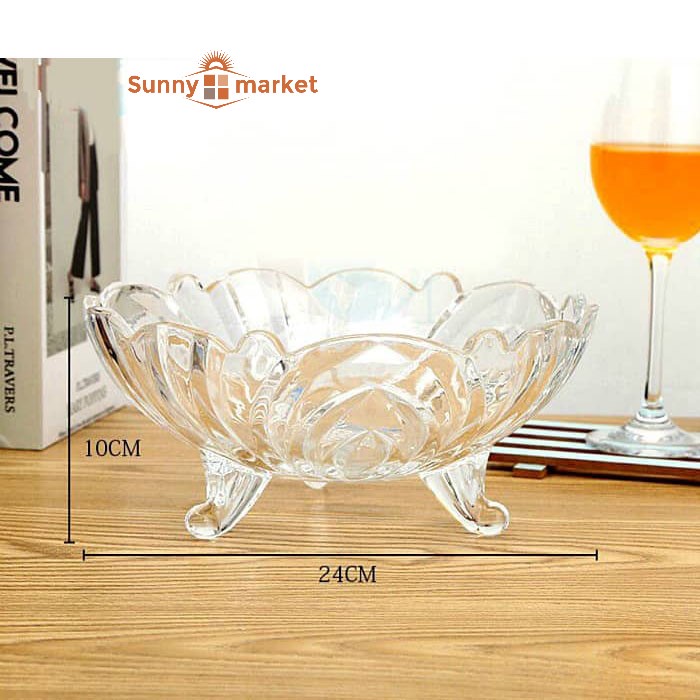 Khay thủy tinh 3 chân đựng hoa quả, Dĩa thủy tinh pha lê 3 chân đựng trái cây sang trọng- Kích thước: Đường kính miệng thố hoa quả: 24cm, cao 10cm.