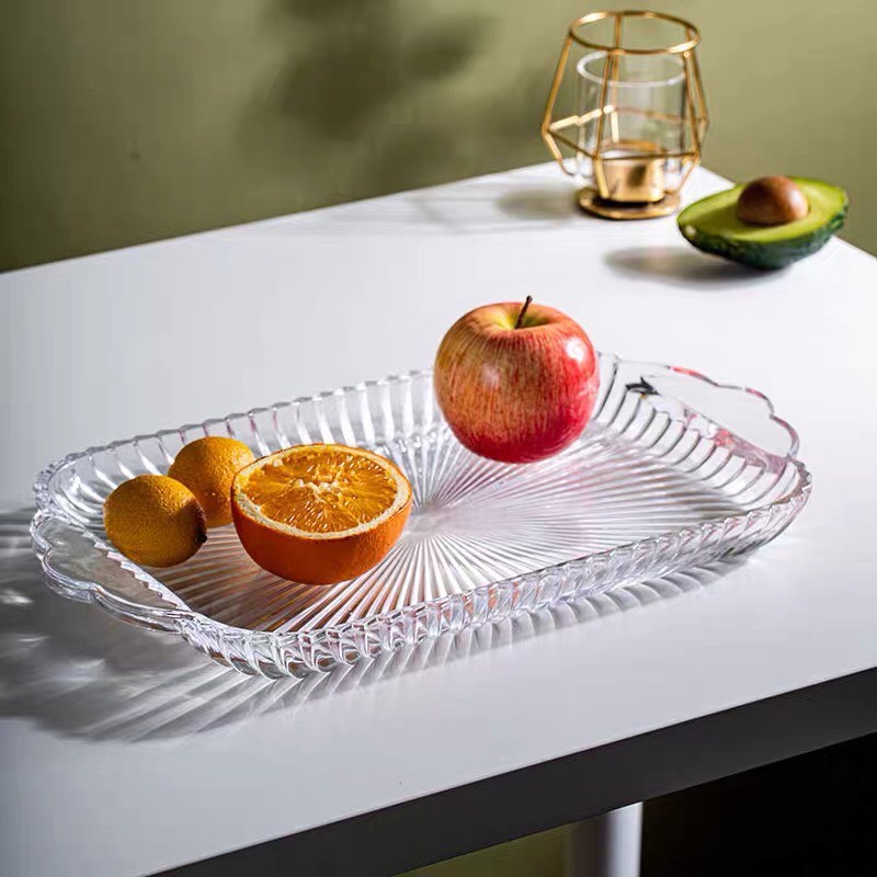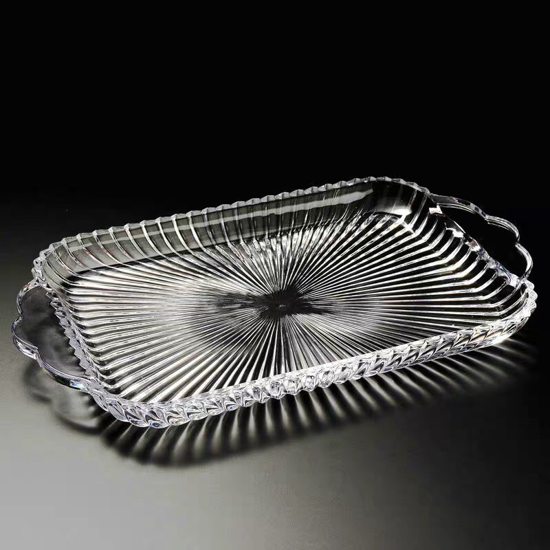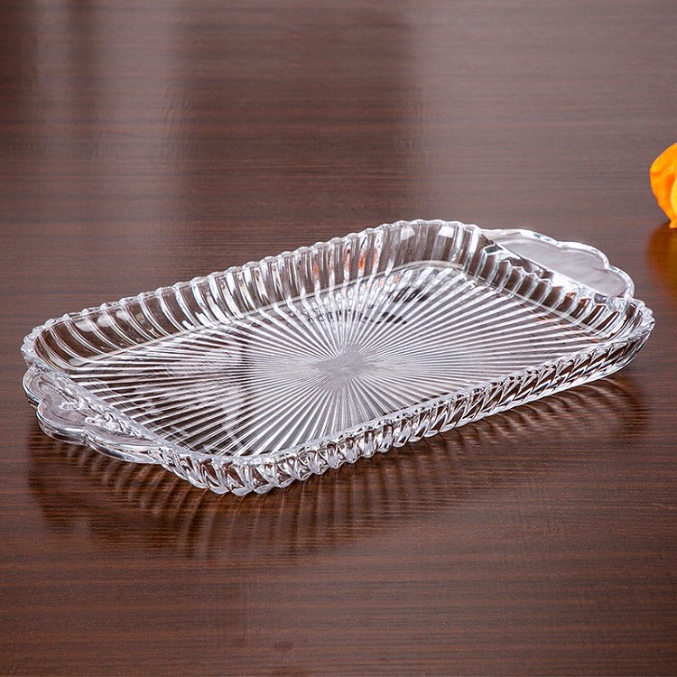 Khay Thủy Tinh Cao Cấp Đựng Cốc Thức Ăn Hoa Quả Hình Chữ Nhật Có Tay Cầm Mã Kích Thước 38x22cm