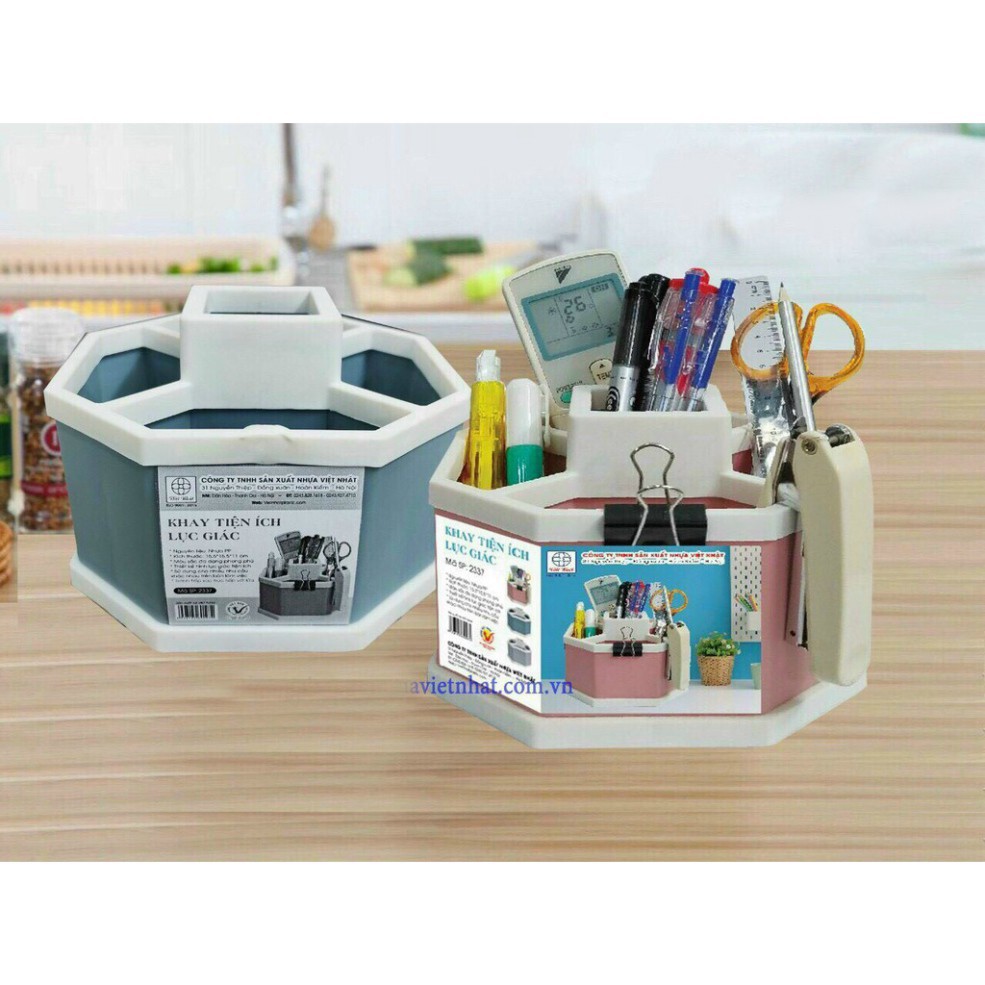 Khay tiện ích 5 ngăn để bàn đựng vật dụng văn phòng bàn học hình lục giác