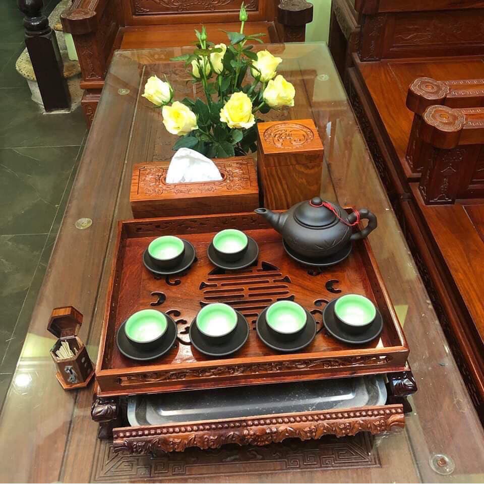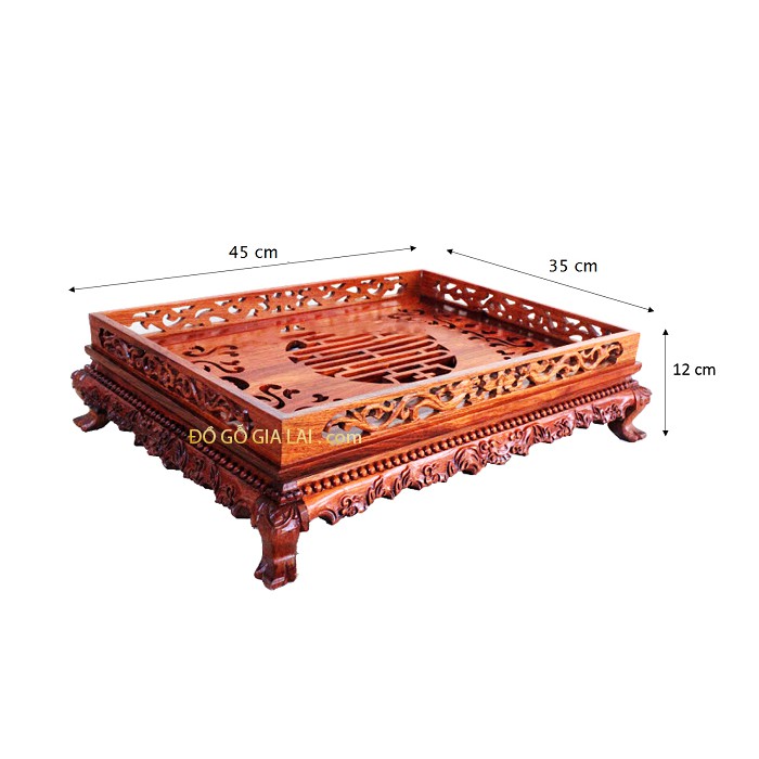 MÔ TẢ: sản phẩm được làm từ gỗ hương đỏ cao cấp, quá trình gia công cẩn thận, kĩ càng, không bị cong vênh, mối mọt trong thời gian sử dụng. độ bền trên 20 nămSỬ DỤNG: dùng để bộ ấm chén uống trà, uống nước trên bàn khách, làm tôn thêm vẻ sang trọng cho phòng khách
