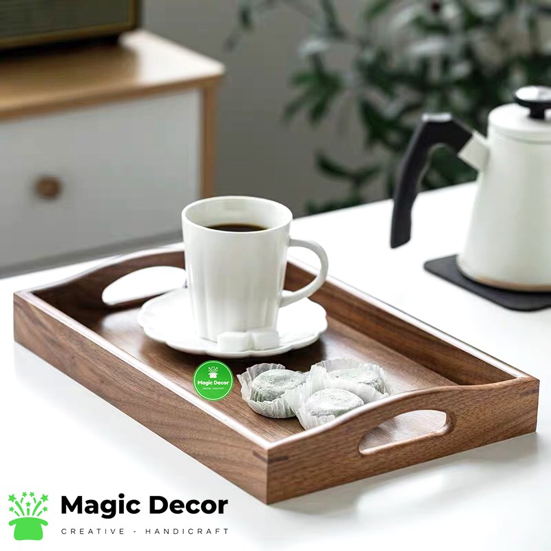 Nhà cửa & Đời sống > Dụng cụ nhà bếp > Dụng cụ pha trà, cà phê || Khay trà decor, khay trà bằng gỗ óc chó nguyên khối cao cấp, kiểu dáng hiện đại, gỗ tối màu cực đẹp | Magic DecorCòn hàng
