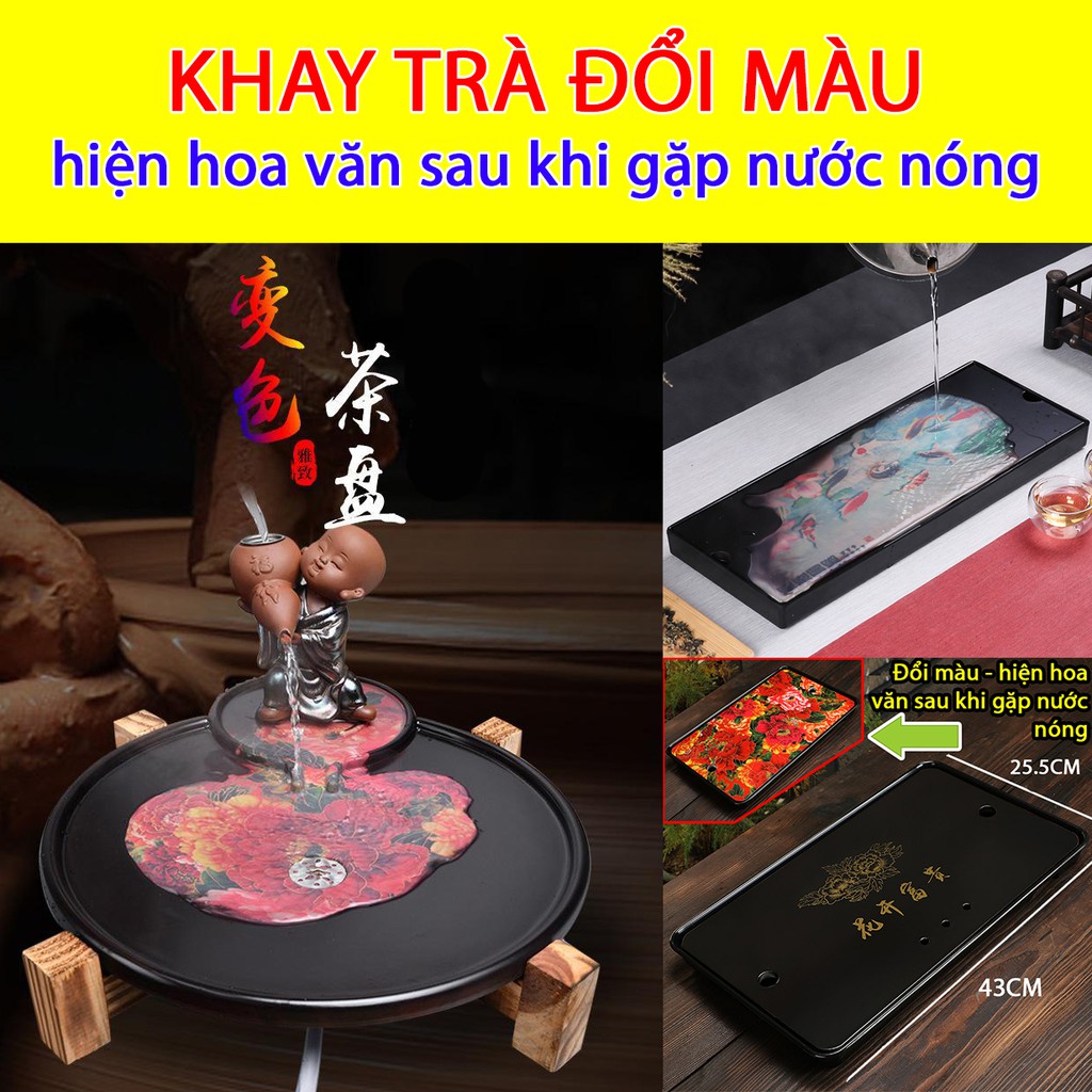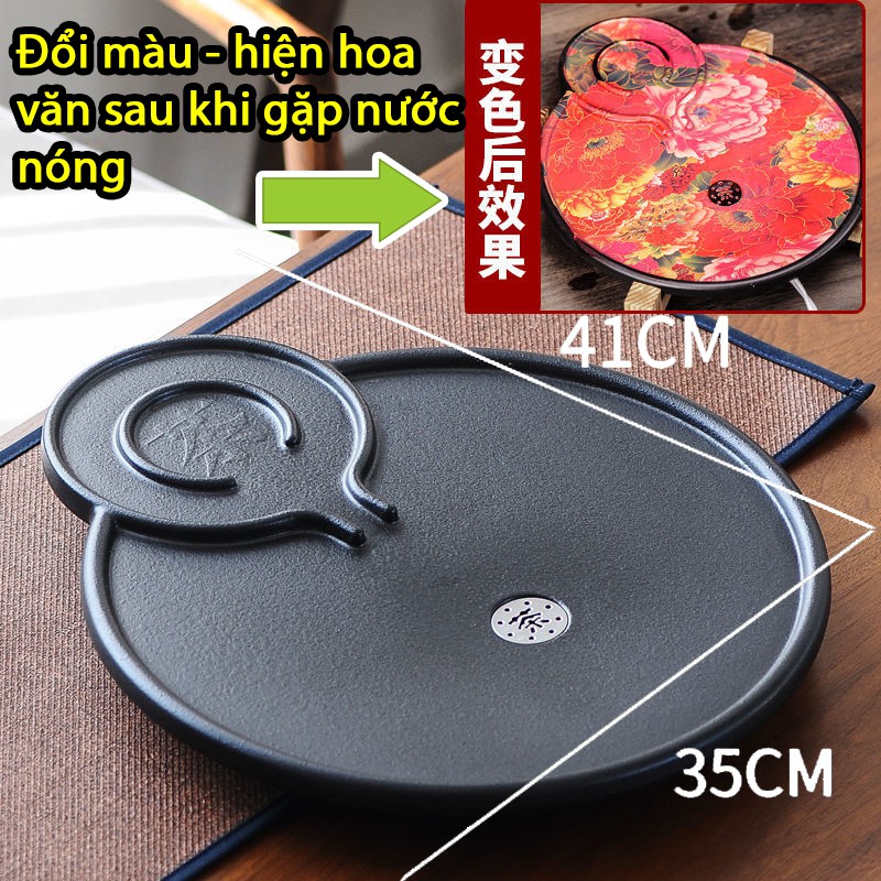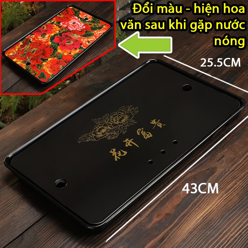 Khay Trà đổi màu hiện hoa văn sau khi gặp nước nóng, cực kỳ hay, độc đáo và đặc biệtSau khi hết nóng khay lại trở về màu đen bình thường.