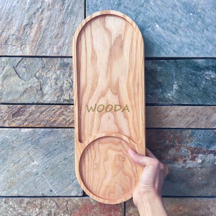 Nhà cửa & Đời sống > Bộ đồ bàn ăn > Khay, tấm lót bàn ăn || Khay Trà Gỗ Hình Oval Chia Ngăn Gỗ Tần Bì - Khay gỗ Phục VụCòn hàng