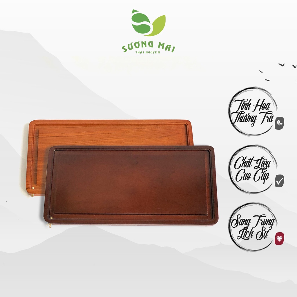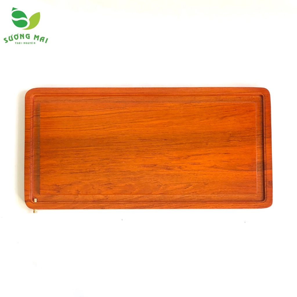 Khay Trà Gỗ Hương Thoát Nước Tự Động SƯƠNG MAI Van Thoát Nước Bằng Đồng Sang Trọng, Tiện Dụng - SM00169