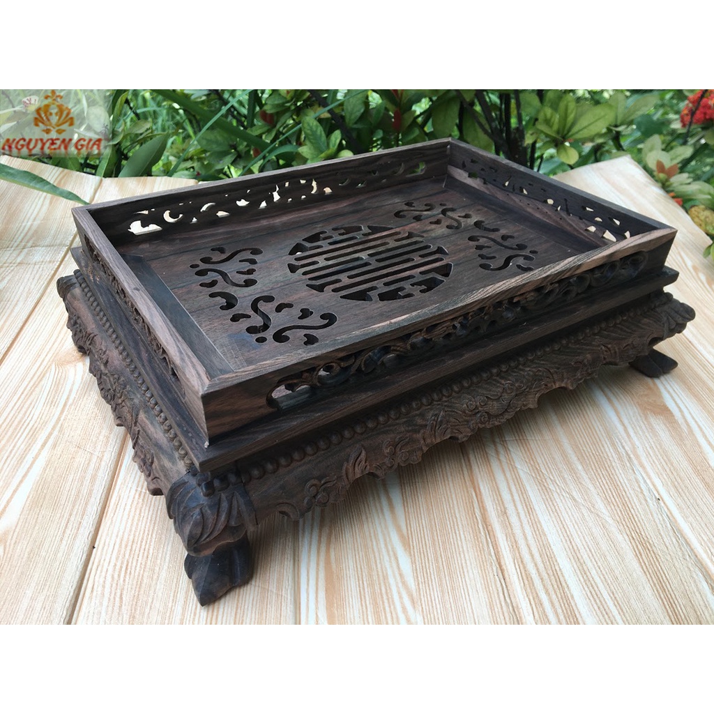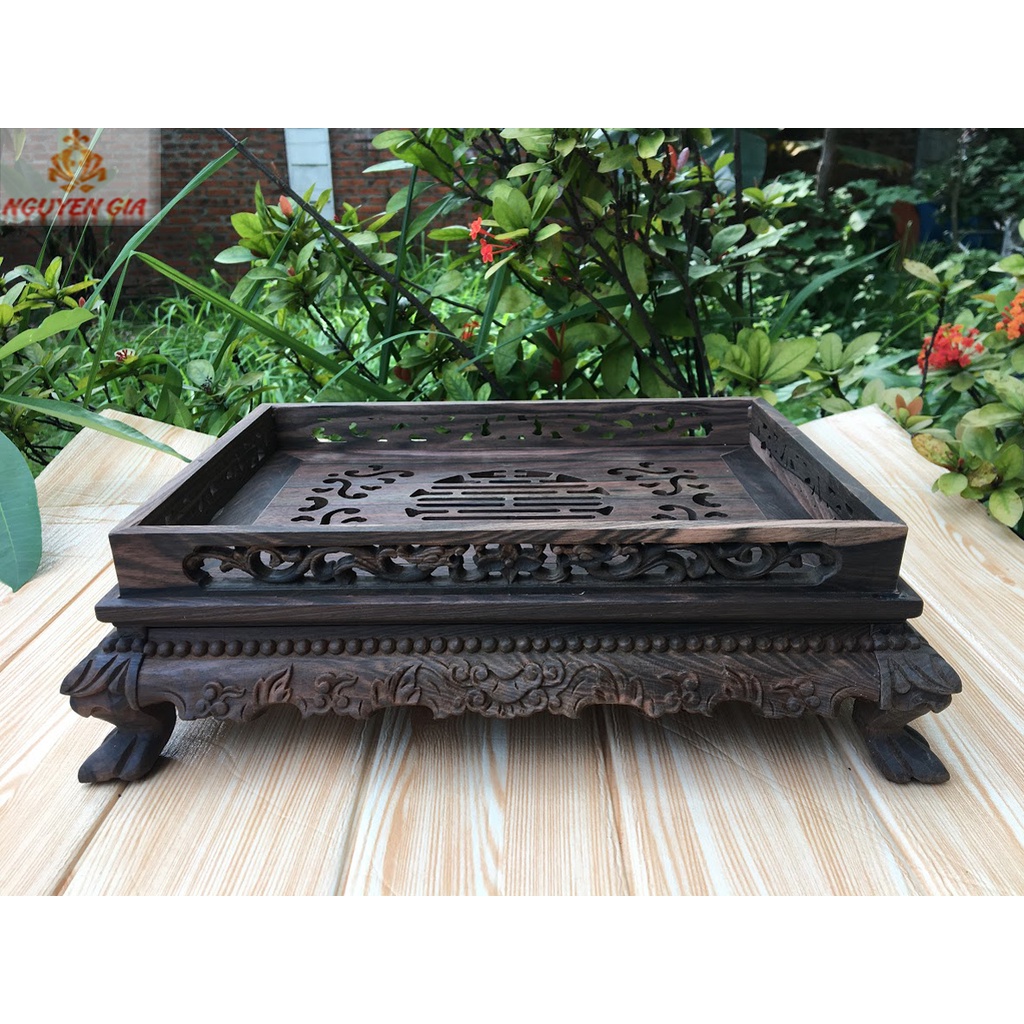 - Khay được gia công cẩn thận tới từng chi tiết, các đường nét trạm khắc có chiều sâu và rất có hồn tạo nên cảm giác thư thái, thanh tịnh mỗi khi ngồi bên bàn trà.