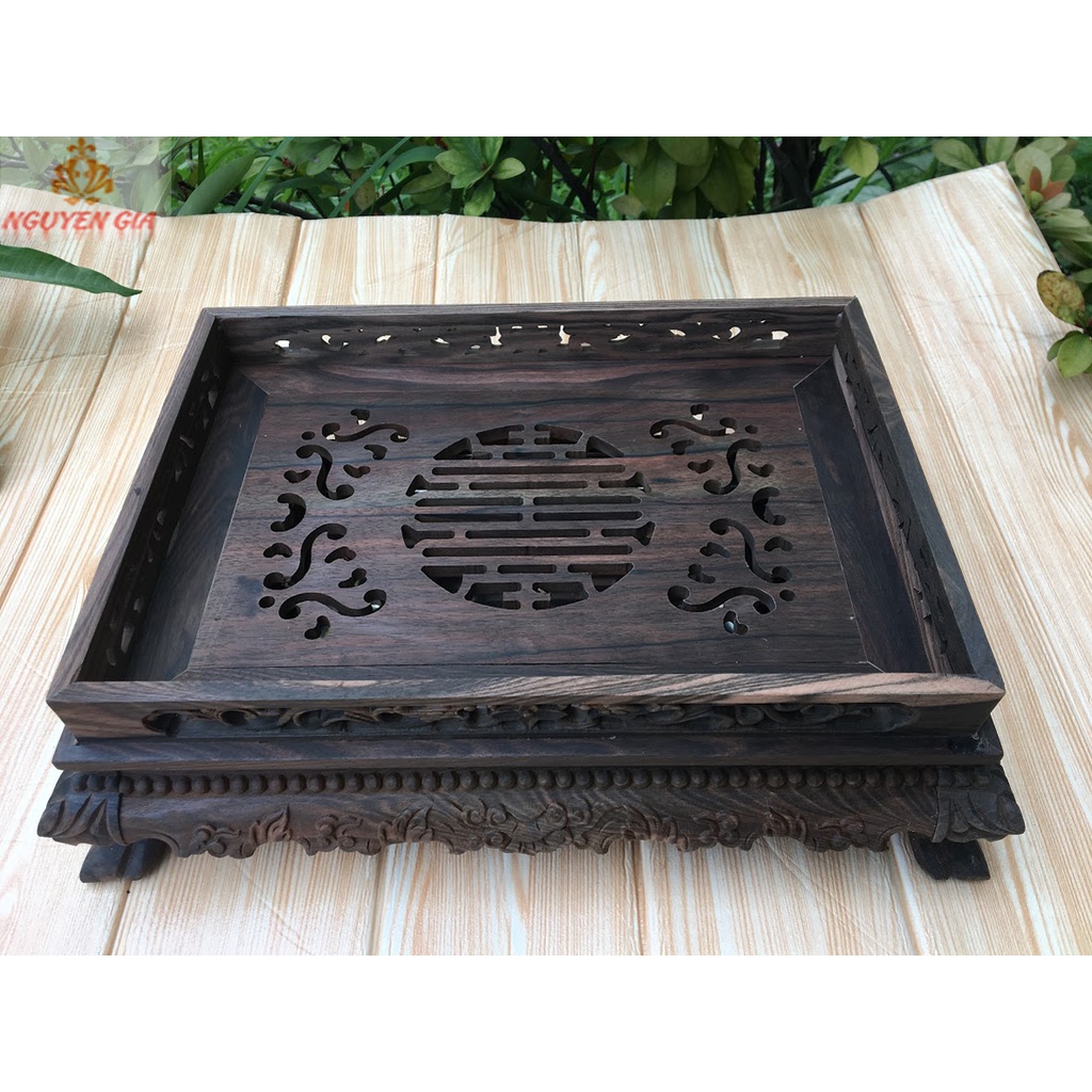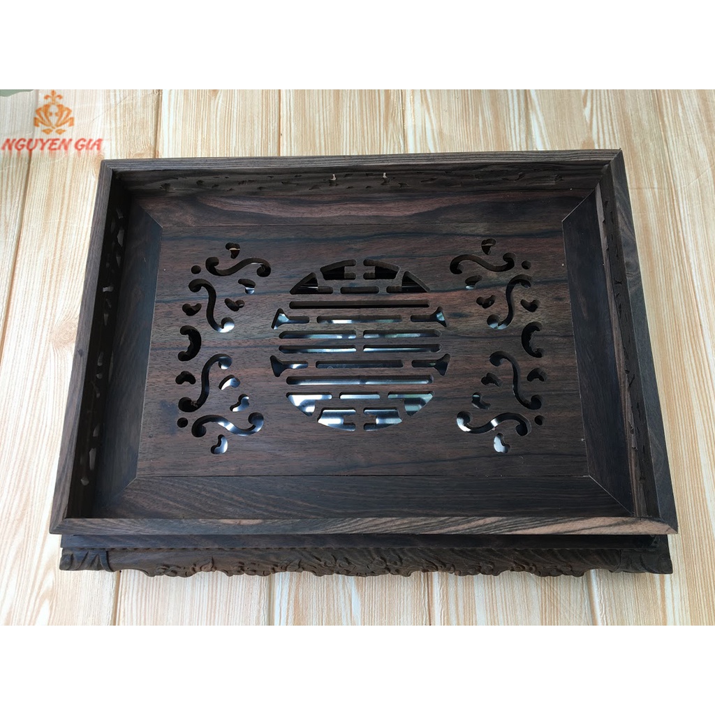 Nhà cửa & Đời sống > Bộ đồ bàn ăn > Khay, tấm lót bàn ăn || Khay trà gỗ Mun trạm Rồng (MỘC)Còn hàng