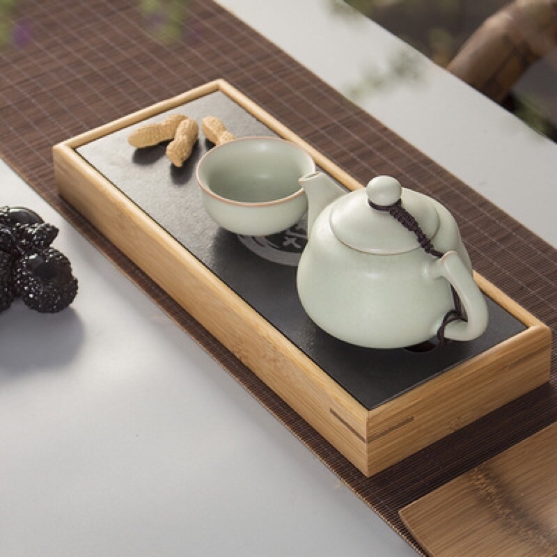 Khay trà Kungfu tre mặt đá—Khung bằng tre- mặt đá.