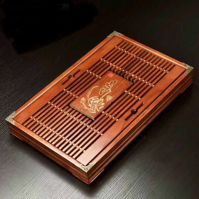 Giới thiệu Khay Trà - Nẹp đồng 4 góc - Bàn Trà - Gỗ tốt - Khay ấm chén Bát Tràng