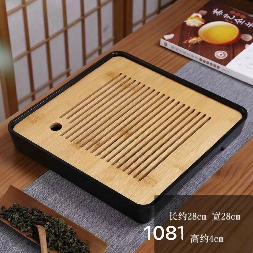 - Khay trà Đạo đế nhựa, mặt bàn bằng tre tự nhiên 100%- Kích thước: 28*28cm