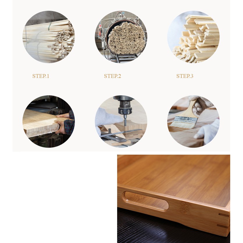 Khay trà tre được làm từ 100% tre đã qua xử lý chống cong vênh mối mọt, được nhập khẩu từ Đài Loan.