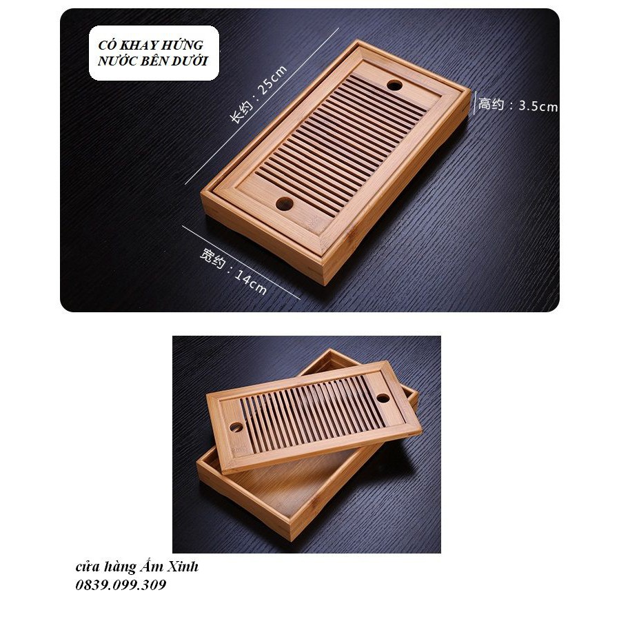 Khay trà tre Đài Loan Cao cấp có khoang hứng nước+ Xuất xứ: Đài Loan