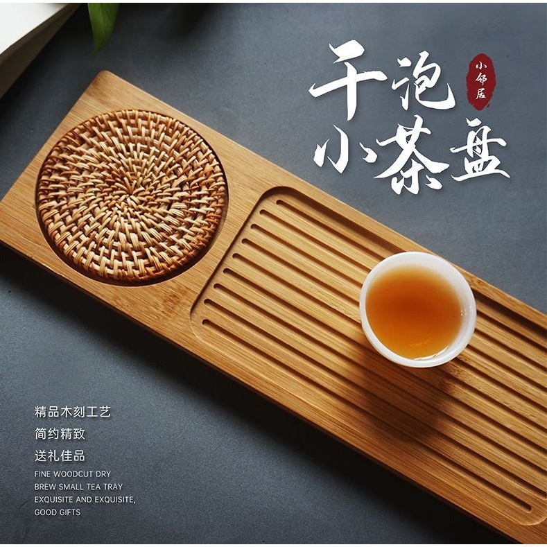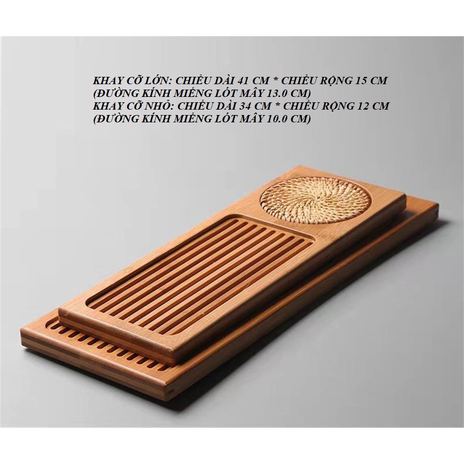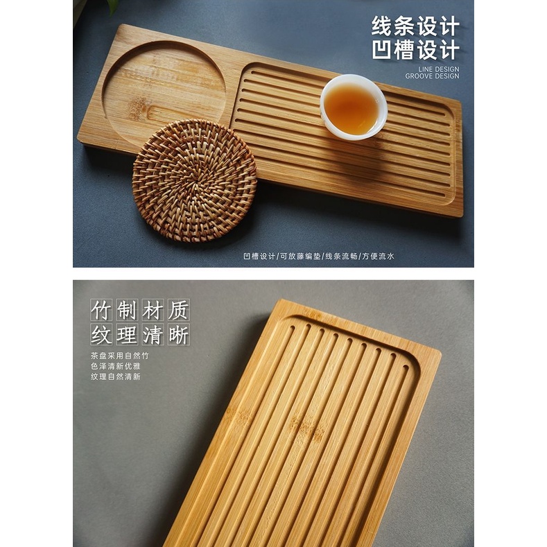Khay Trà Tre Già Kiểu Dáng Nhật Bản Kèm Đế Lót Ấm Bằng Mây+ Xuất xứ: Đài Loan