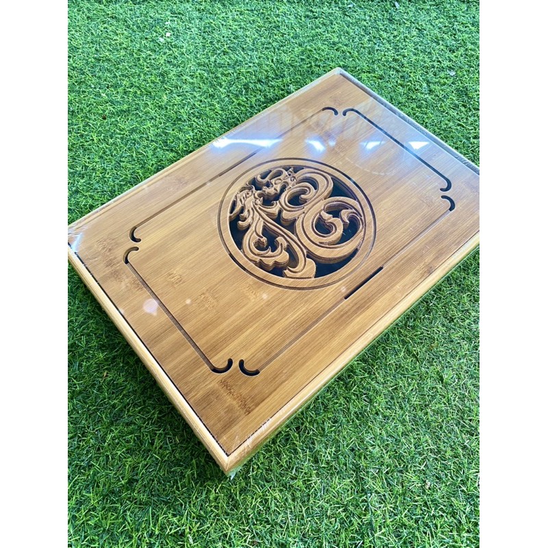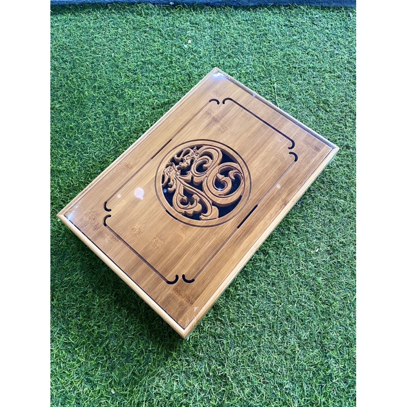 Khay được chế tác tỉ mỉ,hoạ tiết khắc tinh tế sắc nét,Chất liệu tre già xử lý chống cong vênh mối mọt,chịu nước chịu nhiệt tốt.
