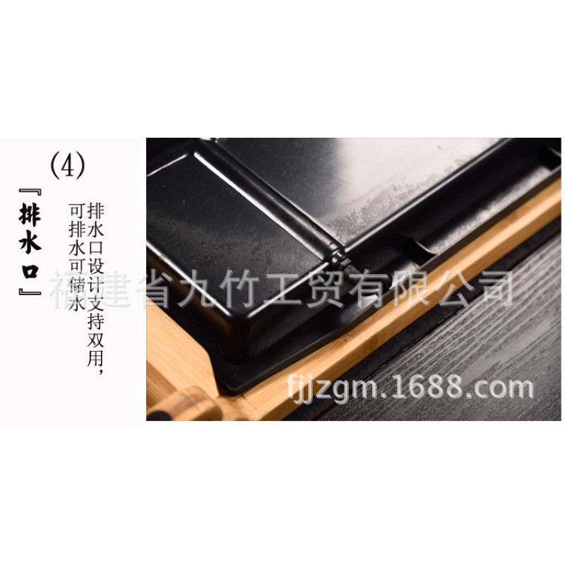 Bề mặt khay luôn khô ráo, tha hồ tráng ấm chén và đổ nước thải vào khay mà không lo bất tiện khó coi, bởi nó có ống thoát nước nối thẳng xuống gầm bàn xả luôn vào thùng đựng nước. Tạo sự thoải mái dễ chịu khi uống trà mà khỏi cần đứng lên ngồi xuống.