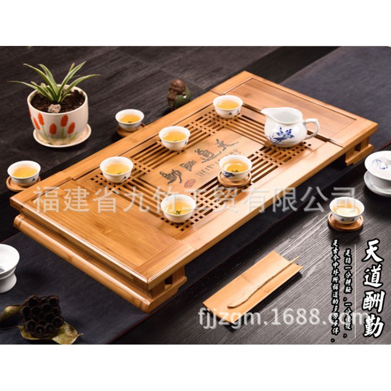 Khay trà tre nhãn hiệu Cửu Trúc- Là sản phẩm đạt chuẩn tiêu dùng nội địa ở phân khúc khách hàng cao cấp. Chuyên dành cho các trà hữu thiên về Trà Đạo.Trên khay điêu khắc dòng chữ : Thiên Đạo Giúp người cần cù. Như một điều hiển nhiên của trời đất, rằng những người cần cù chăm chỉ không bao giờ trời phụ lòng người.