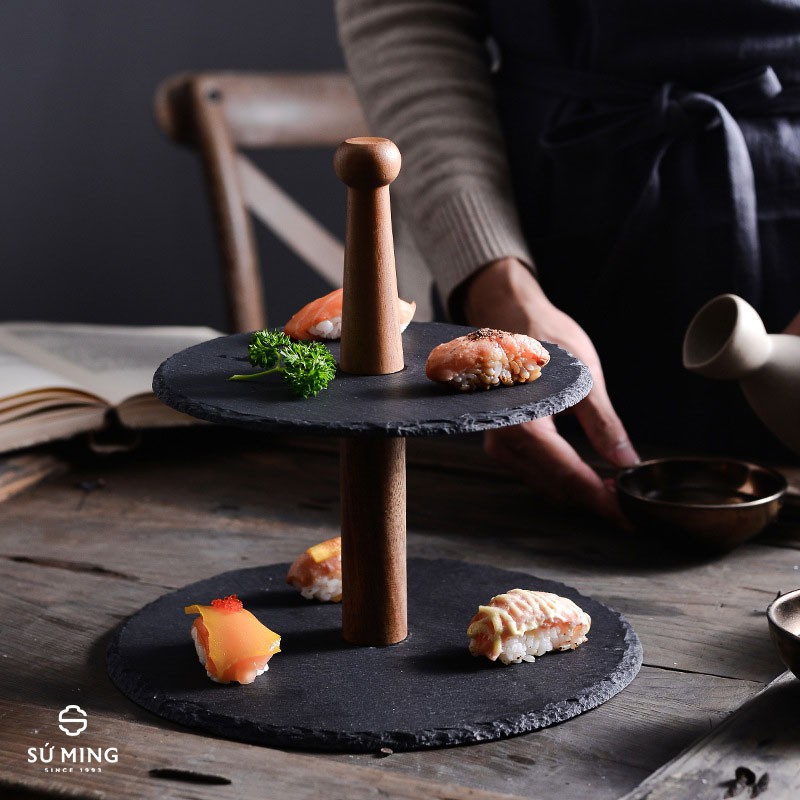 Khay trang trí 3 tầng [DECOR], [ĐÁ TỰ NHIÊN], bày thức ăn, sushi cao cấp, giao hàng an toàn