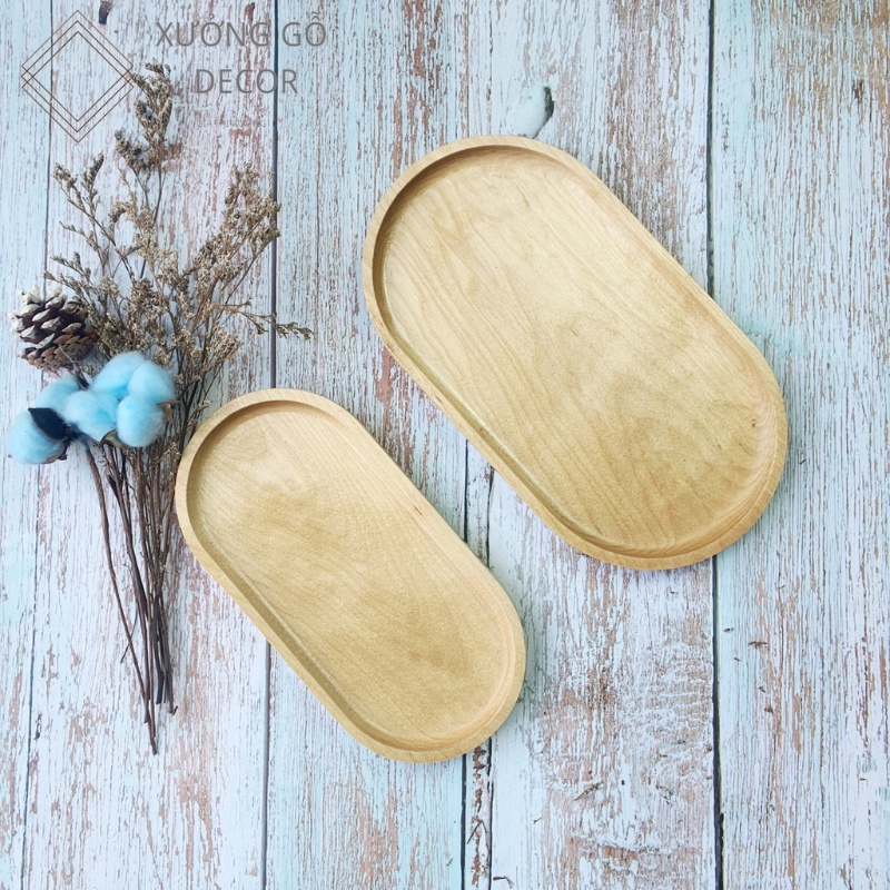 Khay Trang Trí Bàn Ăn Hình Oval - Khay Đựng Đồ Ăn, Chất Liệu Gỗ Tự Nhiên Cao Cấp