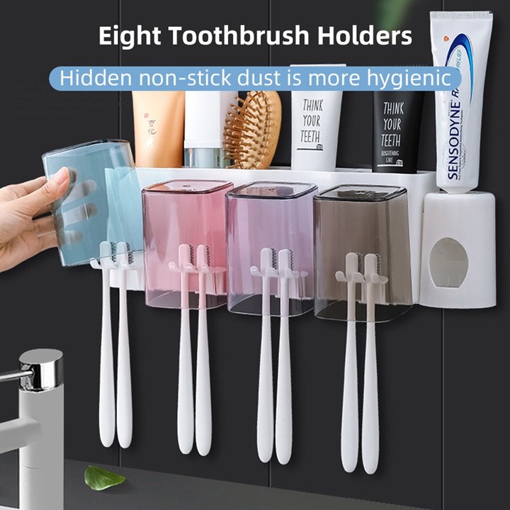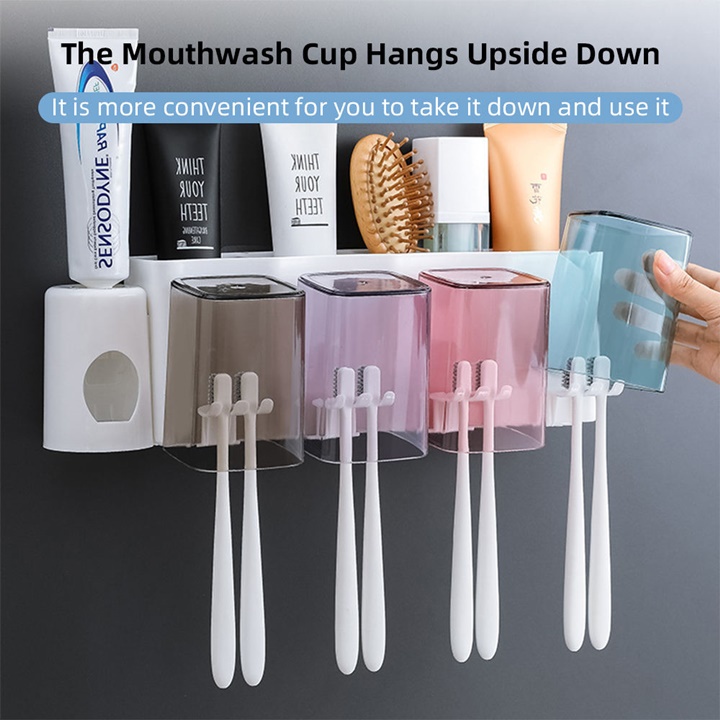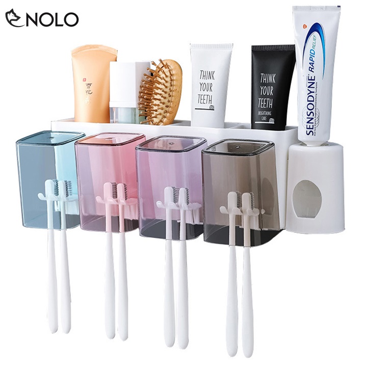 Sản phẩm bao gồm 4 ngăn đựng các vật dụng thiết yếu như: lược, dao cạo râu, kem dưỡng,…, 4 cốc với 4 màu khác nhau, 8 khe để treo bàn chải đánh răng, 1 khay lấy kem đánh răng tự động.