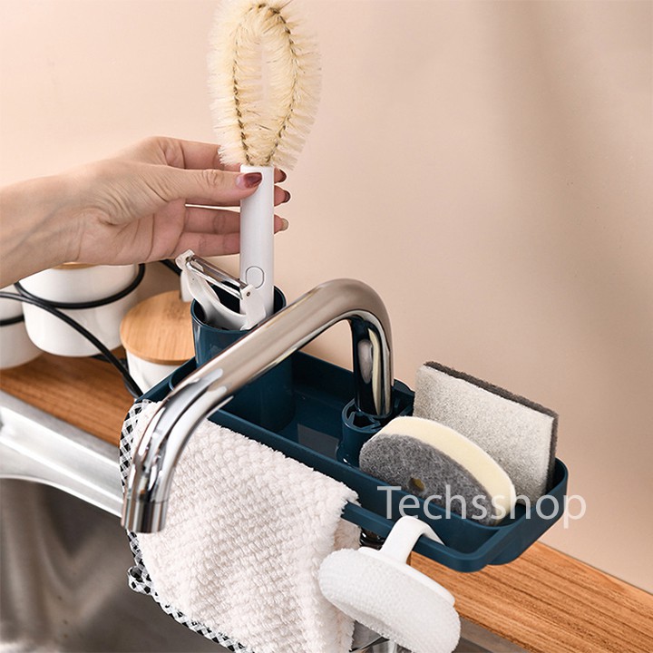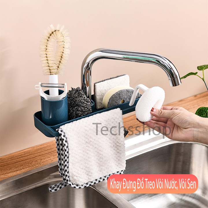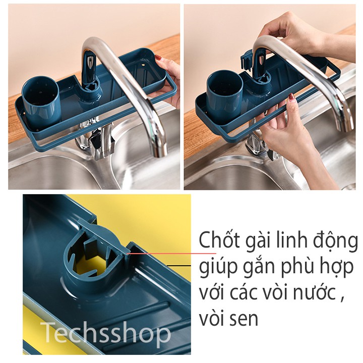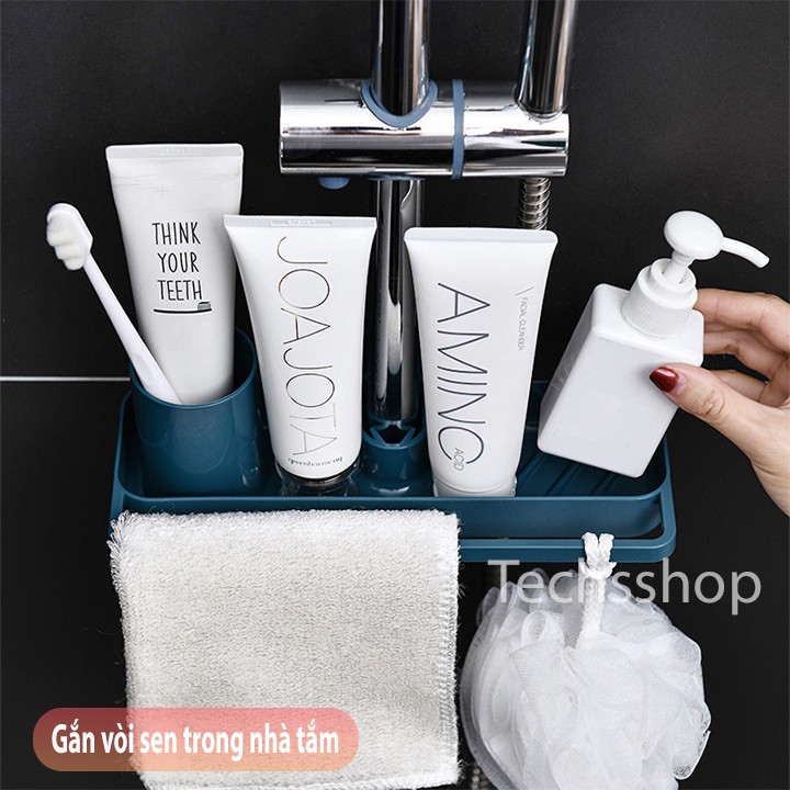 Techsshop giới thiệu đến quý khách một khay/ kệ gắn vòi nước, vòi sen để đồ tiện lợi với khay treo vòi nước có ống để đồ và giá treo khăn có thể lắp phù hợp với tất cả vòi vì chốt răng di chuyển linh động ôm sát tùy vào kích cỡ1 Thông tin sản phẩm