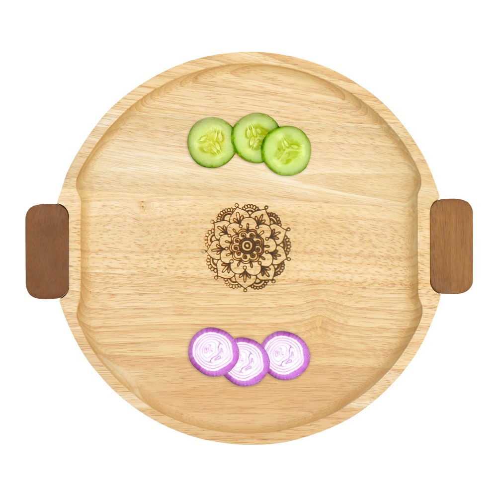 Khay Tròn Có Tay Cầm Họa Tiết Dễ Thương - Gỗ Cao Cấp Bền Đẹp An Toàn - Kích Thước 33 x 29 x 1.7 cm cm - Gỗ Đức Thành
