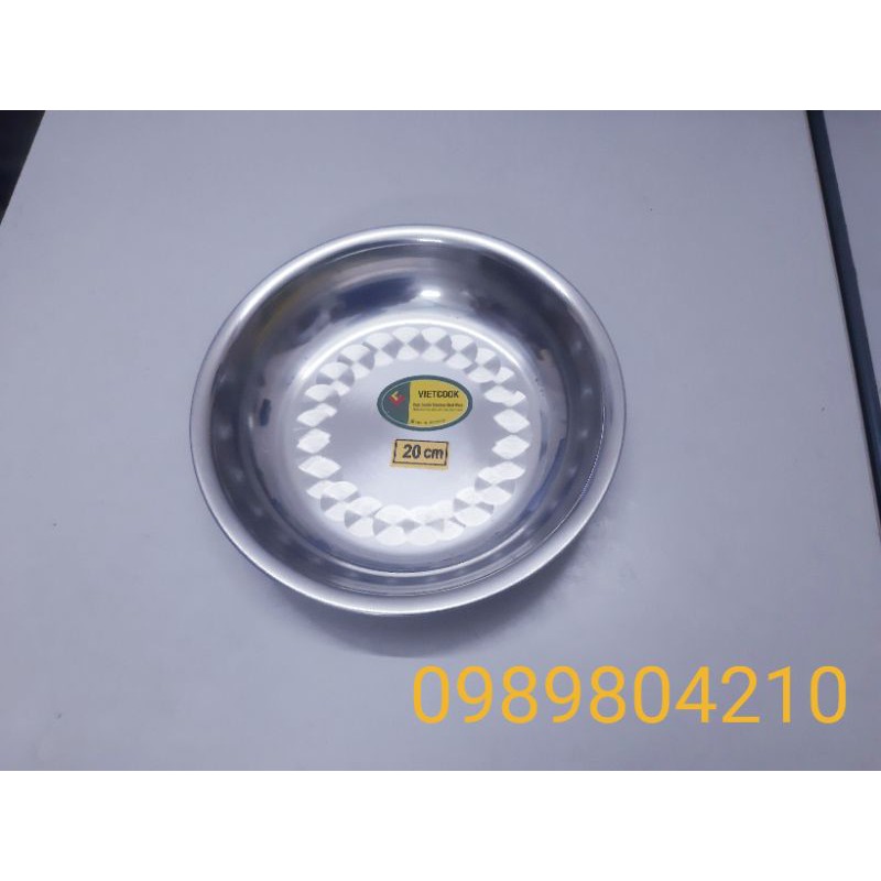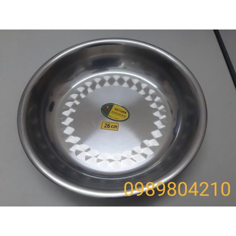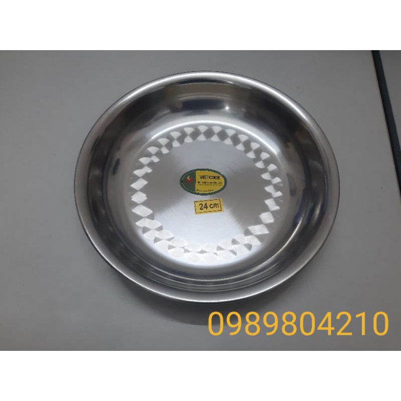 Khay tròn inox, mâm tròn inox đủ size 20, 22, 24, 26, 28, 30 cm đựng hoa quả, thực phẩm... cao cấp không rỉ VietcookKhay tròn inox chính hãng Vietcook làm từ inox cao cấp, sáng bóng, chắc chắn, không bị oxy hóaKhay có ưu điểm vượt trội của inox là khả năng chịu nhiệt, chịu lực tốt, an toàn cho sức khỏe