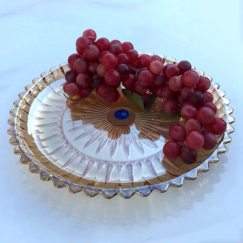 Khay tròn thuỷ tinh ánh vàng size 30 cm