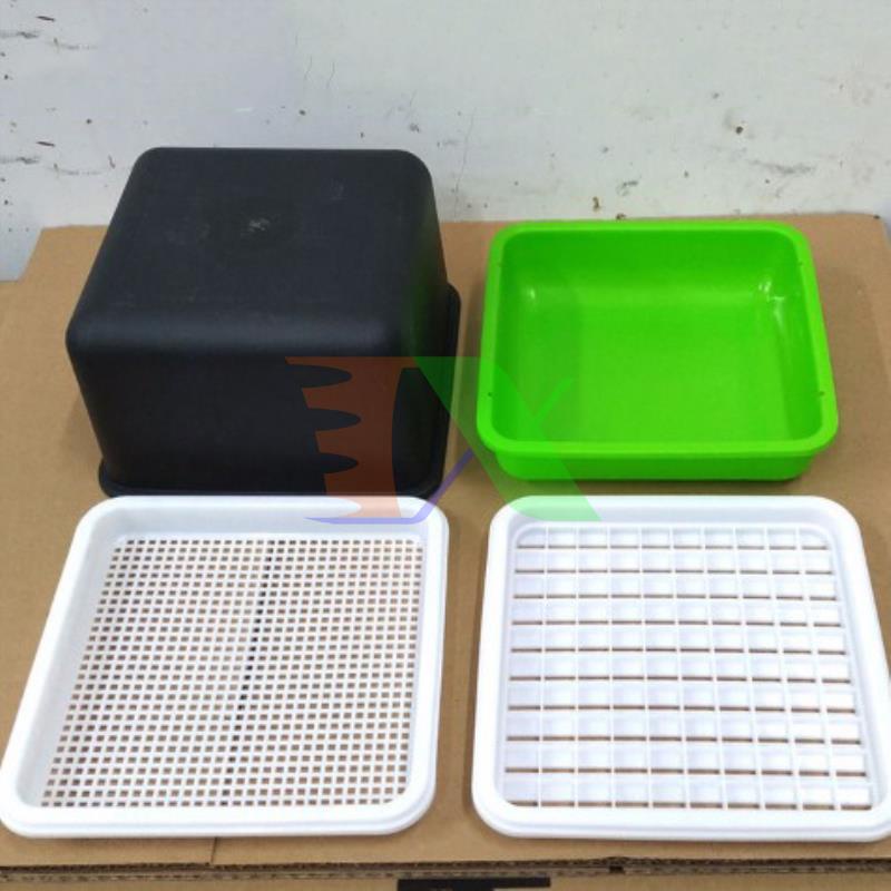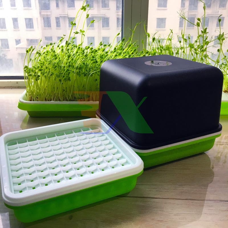 Khay có cấu tạo 4 lớp, lớp dưới chứa nước, lớp trên có cấu trúc dạng lưới để rau có thể cắm rễ xuống hút dinh dưỡng, nắp đậy giúp giữ ấm vào mùa đông làm mát vào mùa hè, cách ly tốt với môi trường. Chúng tôi có các sản phẩm : Khay trồng rau mầm thủy canh 2 lớp, Khay trồng rau mầm thủy canh 3 lớp có nắp đậy.