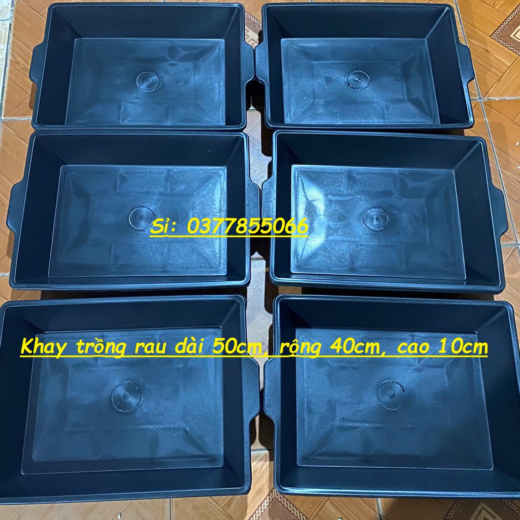 Khay Trồng Rau Sạch dài 50cm x rộng 40cm x cao 10cm, Máng trồng rau bằng nhựa dẻo dai, thiết kế độ sâu vừa phải tiết kệm đất trồng, Chậu trồng rau ban công sân thượng, chậu trồng câyKhay trồng rau sạch giá rẻ dùng bền Khay được làm nhựa dẻo, cứng cáp.