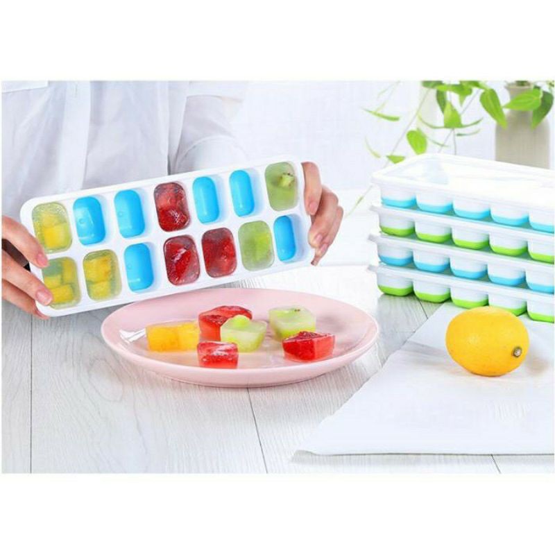 Khay trữ đông bảo quản đồ ăn khay làm đá đế silicon có nắp đậy tiện dụng- Kích thước khay 5.4 x 9.8 x 3 cm ,gồm 14 ô (khoảng 20ml/ô)
