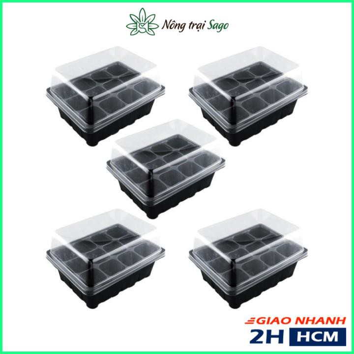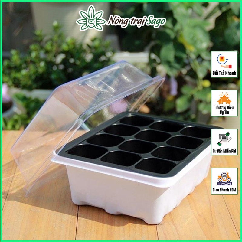 Khay Ươm Hạt Giống 12 Ô Có Nắp Đậy Bảo Vệ Tránh Côn Trùng, Tiện Lợi, Dễ Sử Dụng, Độ Bền Cao - Nông Trại Sago