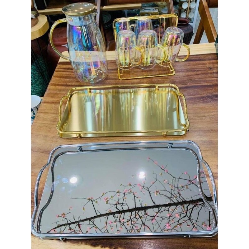 #bê_đồ #khay_bình_cốc #khay_thủy_tinh #khay_tráng_gương #khay_decor #set_bình_cốc_kèm_khay