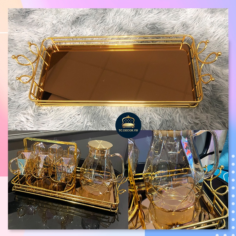 Giới thiệu Khay Úp Cốc Kinh Gương Viền Mạ Vàng Sang Trọng Tinh Tế