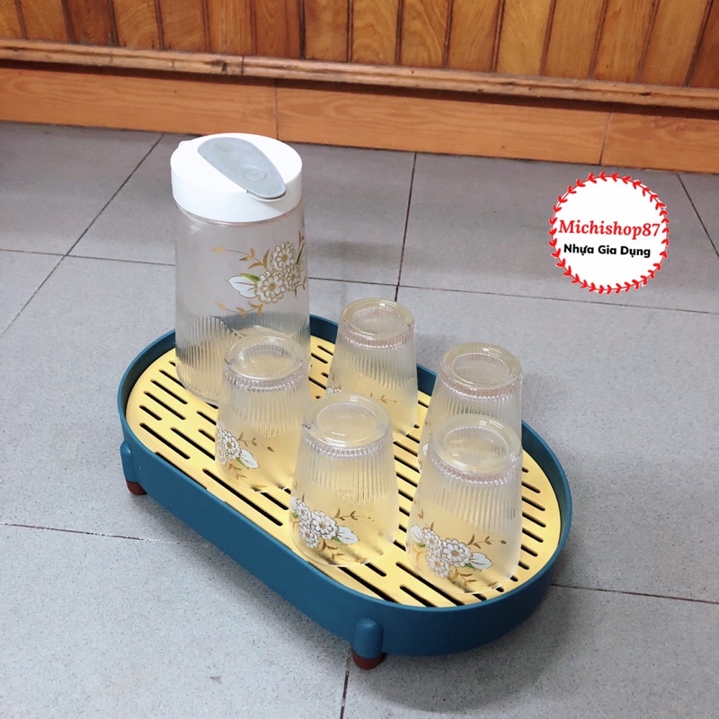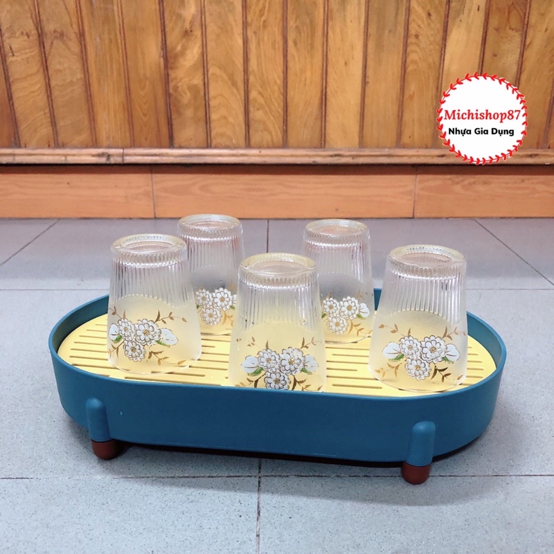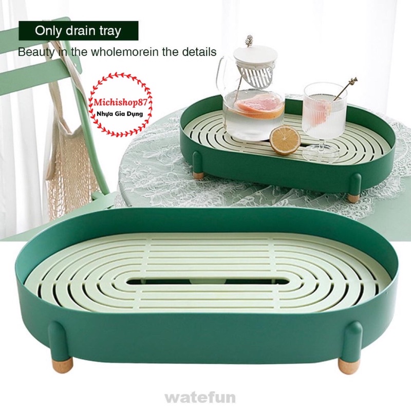 Khay Úp Ly, Úp Cốc, Khay Ấm Chén Ráo Nước Hình Ovan Có Thể Tháo Rời Đa Năng Nhà Bếp, Khay Trà Kiểu Dáng Sang Trọng