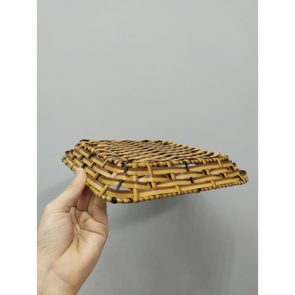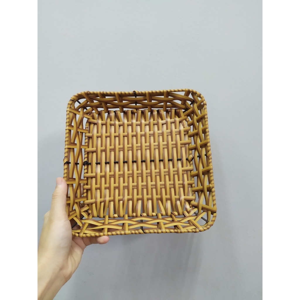 Mô tả sản phẩm[Tên sản phẩm] Khay Vuông Nhựa Giả Mây Tre Dùng Để Đựng Đồ/Trang Trí.