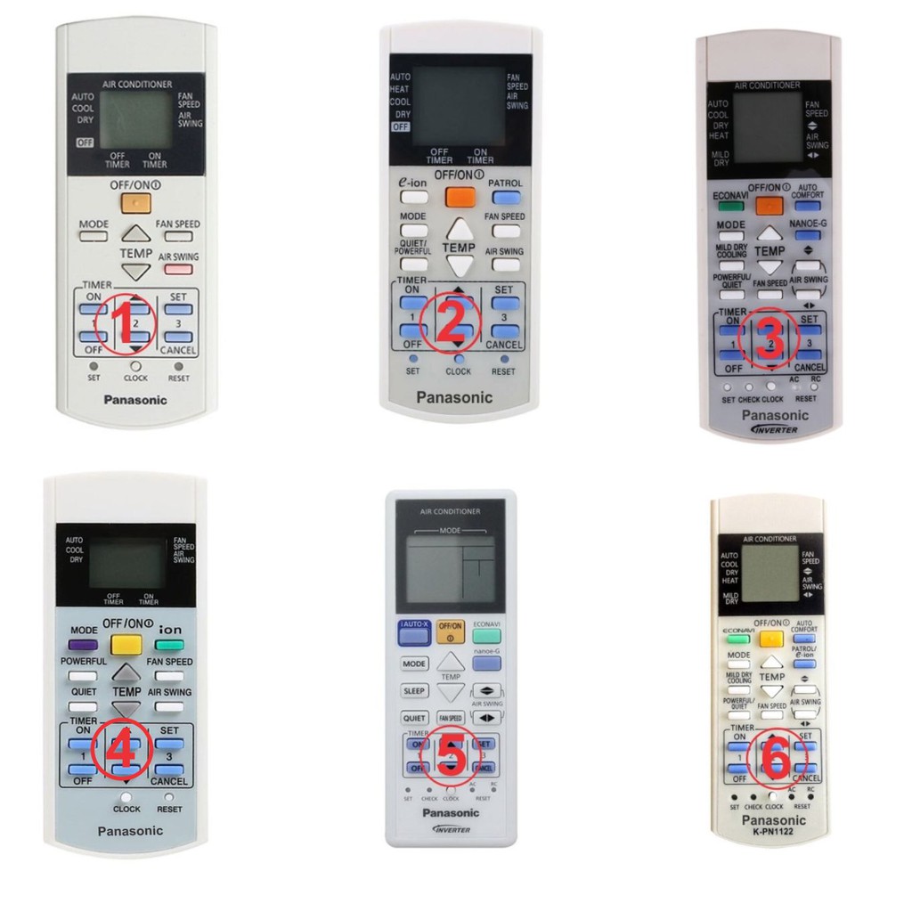 6.Panasonic Đa năng (Chiếc này thay thế được 5 loại trên, nó tương thích 100% với các điều hoà Panasonic hiện nay) Nếu anh chị đã bị mất điều khiển và không nhớ cái điều khiển gốc như thế nào thì đây là cái thay thế tốt nhất.