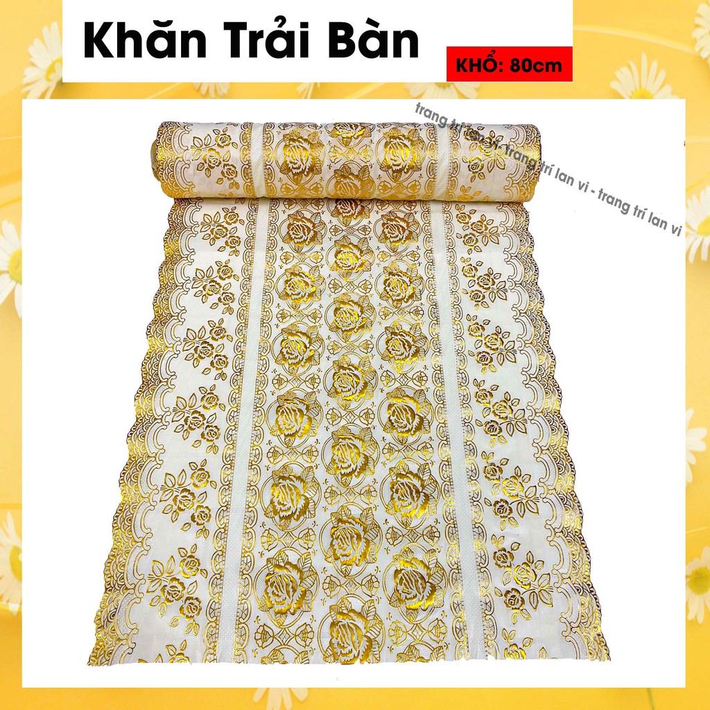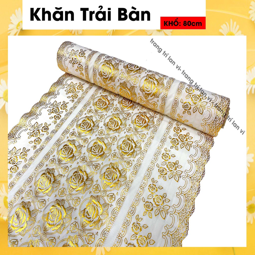 [KHỔ 76CM] Tấm khăn trải bàn bằng nhựa hoa văn vàng nổi, không thấm nước