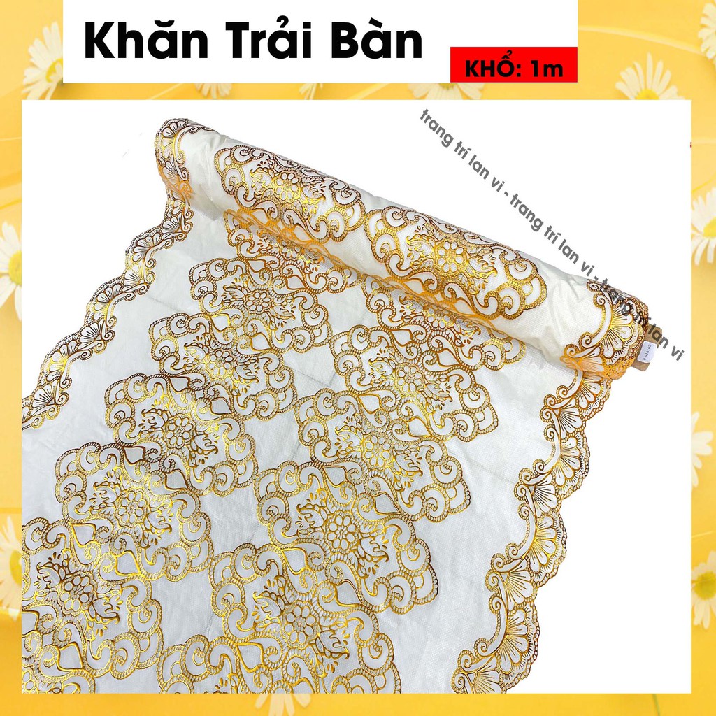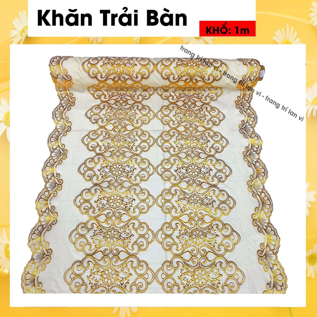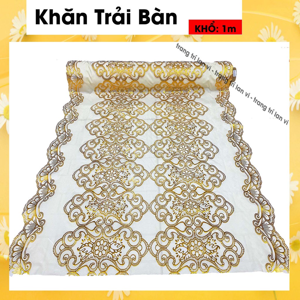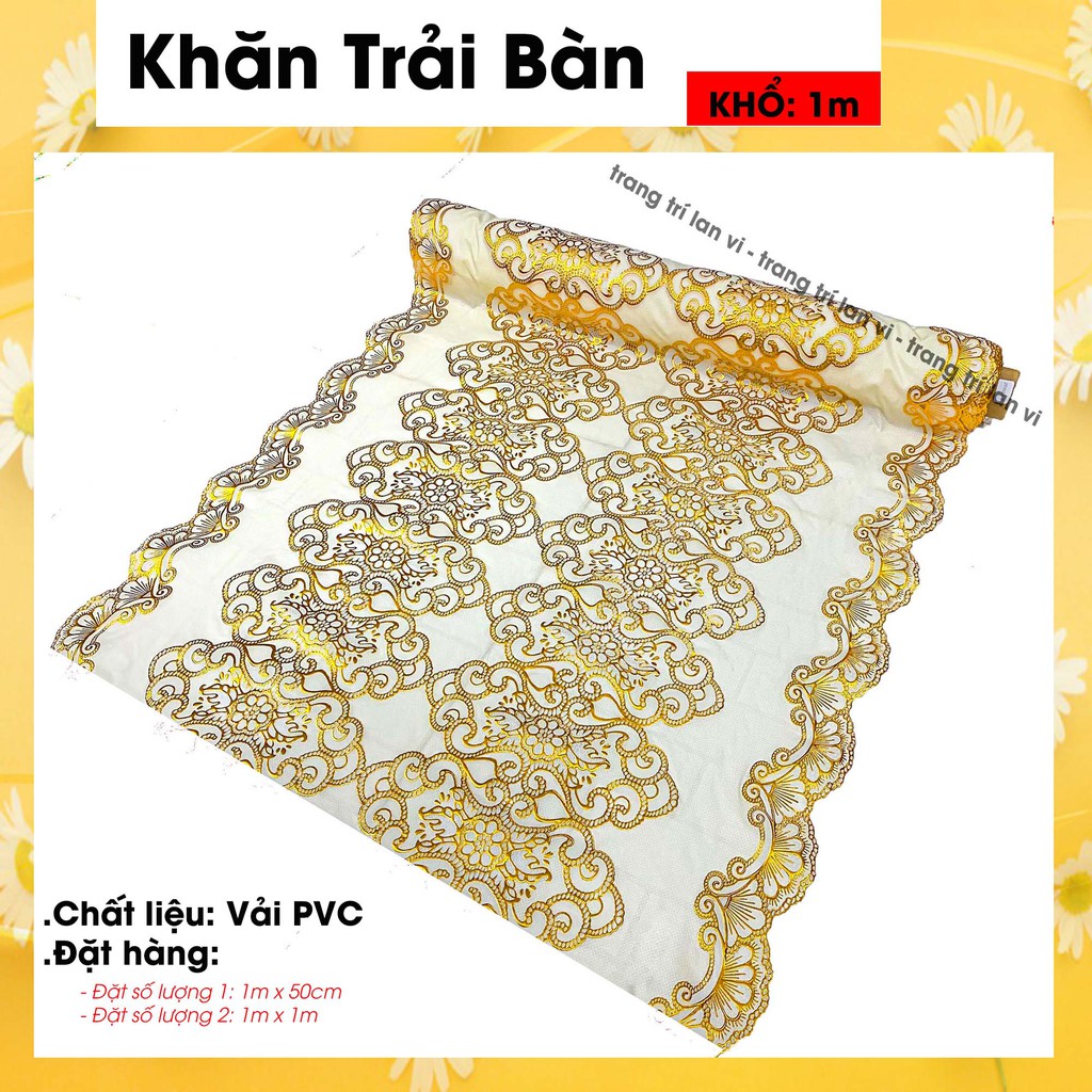 [KHỔ 97cm] Tấm khăn trải bàn bằng nhựa hoa văn vàng nổi, không thấm nước