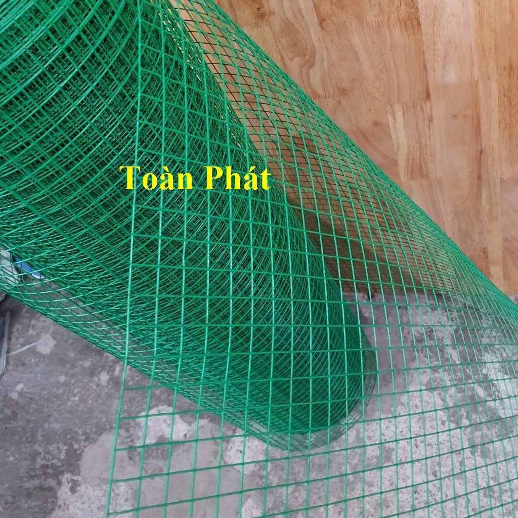 ( Khổ cao 1m) Cuộn lưới sắt bọc nhựa mắt lưới màu xanh, ô vuông rộng 1.2cm, 2cm