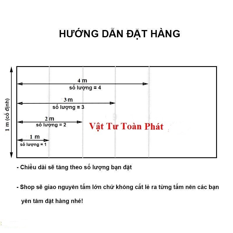 Ví Dụ : Khách mua 1m tôn nhựa sẽ là : Chiều cao khổ 1m x 1m dài ( khách chọn số lượng là 1)
