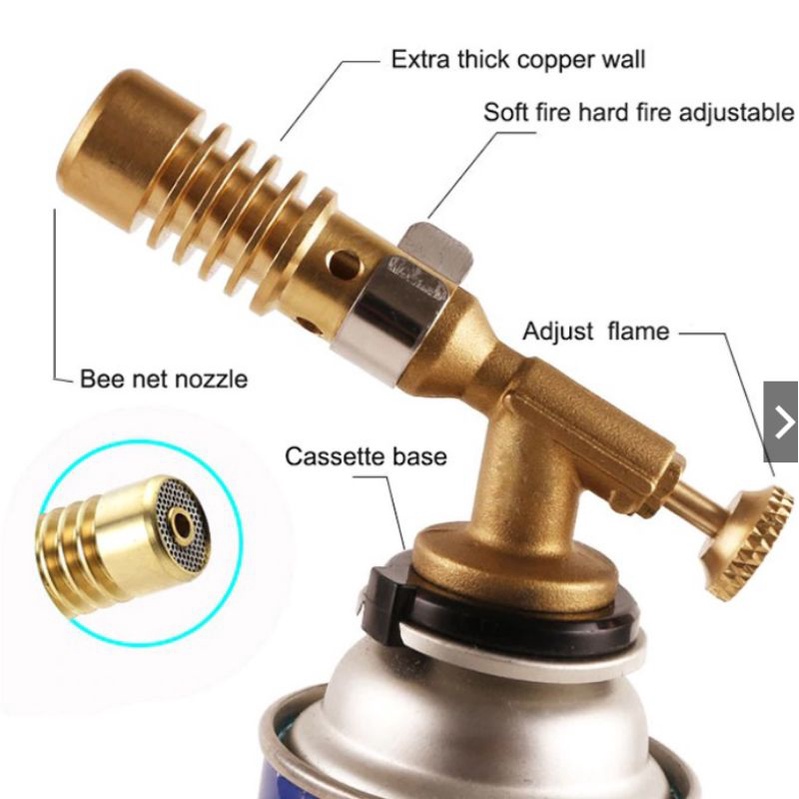 Chất liệu: đồng nguyên khối (trừ phần đế lắp vào bình gas bằng nhựa), chịu nhiệt 1300 độ, độ bền cực cao, không lo bể vỡ hoặc đứt gãy