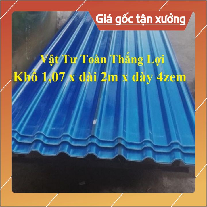 Giới thiệu ( Khổ rộng 1.07m x dài 2m x 4 dem ) Tôn nhựa dạng sóng màu Xanh lấy ánh sáng che mưa