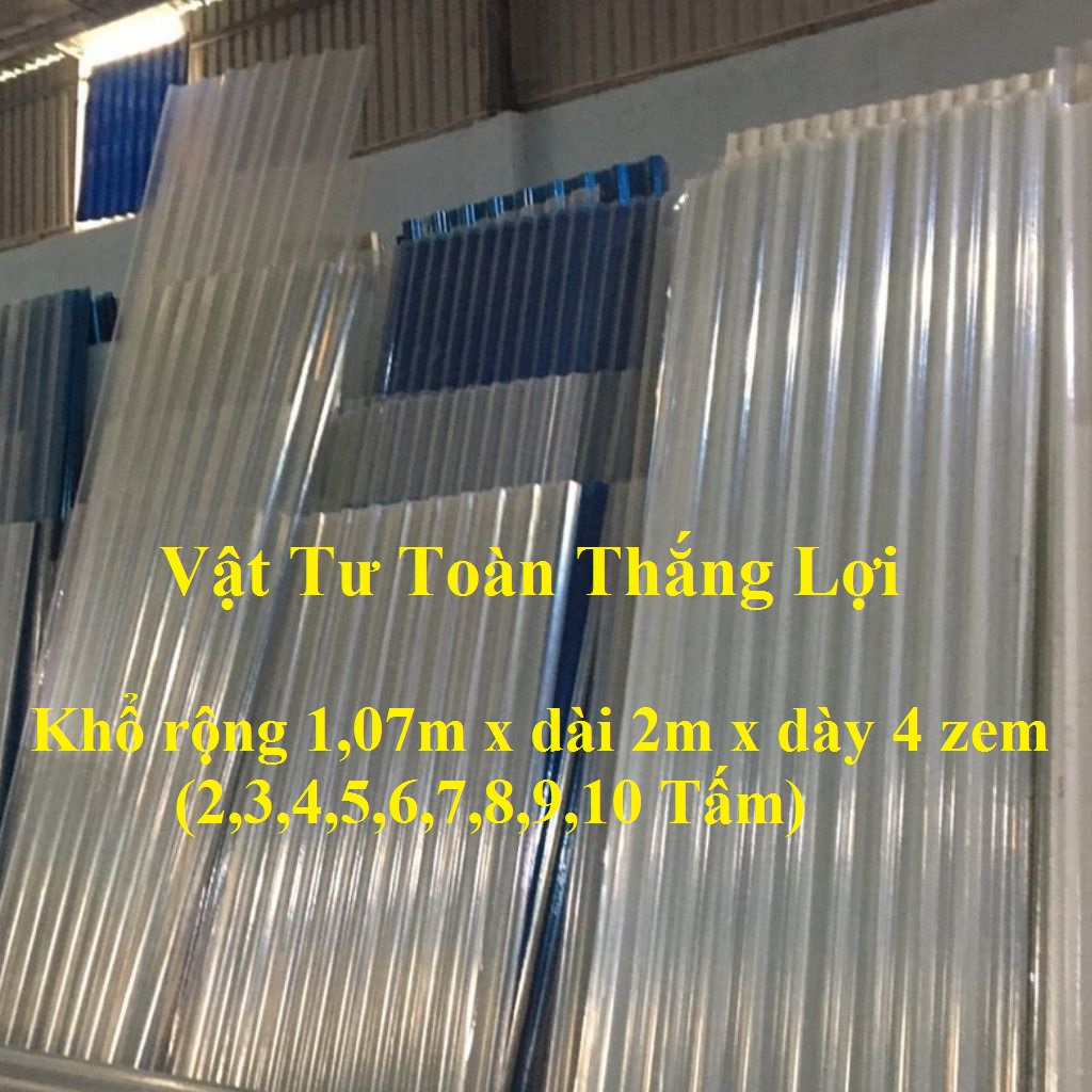 ( Khổ rộng 1.07m x dài 2m x 4 dem x từ 2 đến 10 tấm ) Tôn nhựa dạng sóng màu trắng/ màu Xanh lấy ánh sáng che mưa