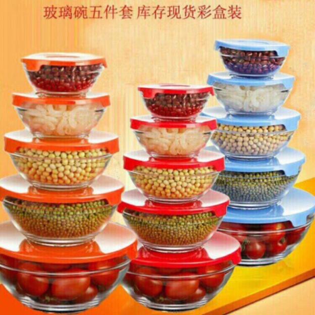 Nhà cửa & Đời sống > Bộ đồ bàn ăn > Tô || [KHO SỈ] Bộ 5 bát thuỷ tinh có nắp đậyCòn hàng