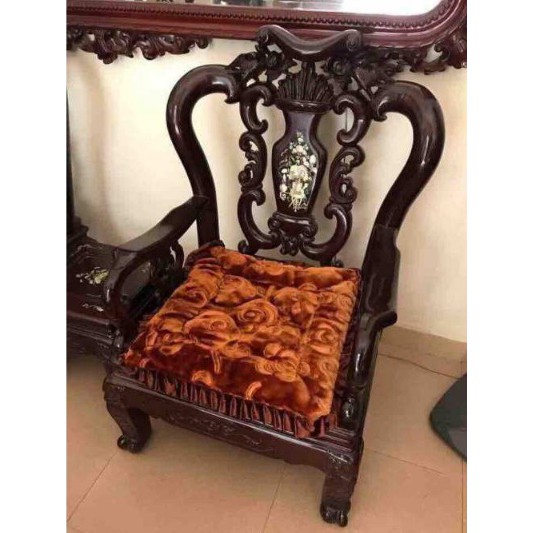 Bộ thảm trải ghế nhung giúp cho bạn ấm áp khi ngồi trên ghễ gỗ lạnh lẽo vào mùa đông, không những thế thảm có thể dùng ngồi ở nhiều chỗ nếu bạn thích.