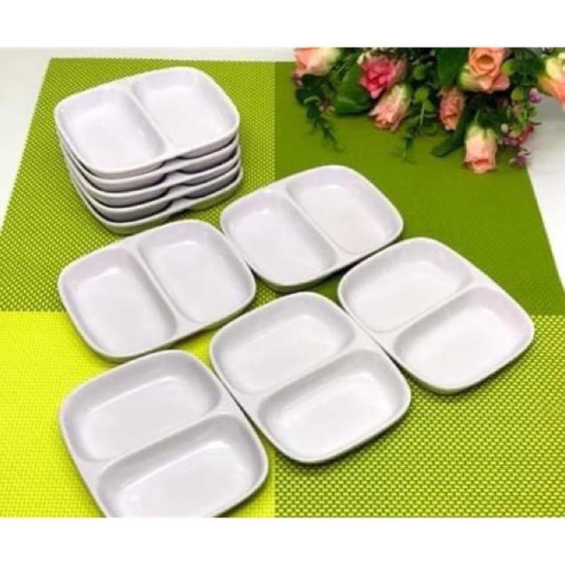 Nhà cửa & Đời sống > Bộ đồ bàn ăn > Dĩa || [KHO SỈ] Đĩa chấm nhựa phíp 2 ngăn trắng và hoaCòn hàng