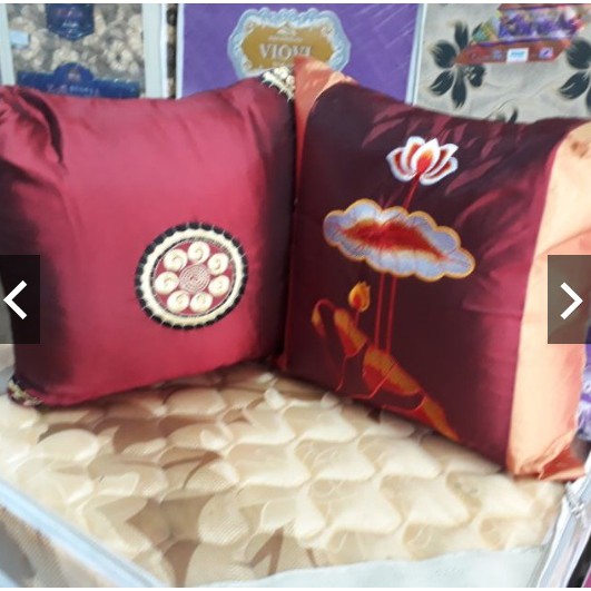 Với gối tựa lưng phong cách Hàn Quốc: chất liệu vải gấm bóng