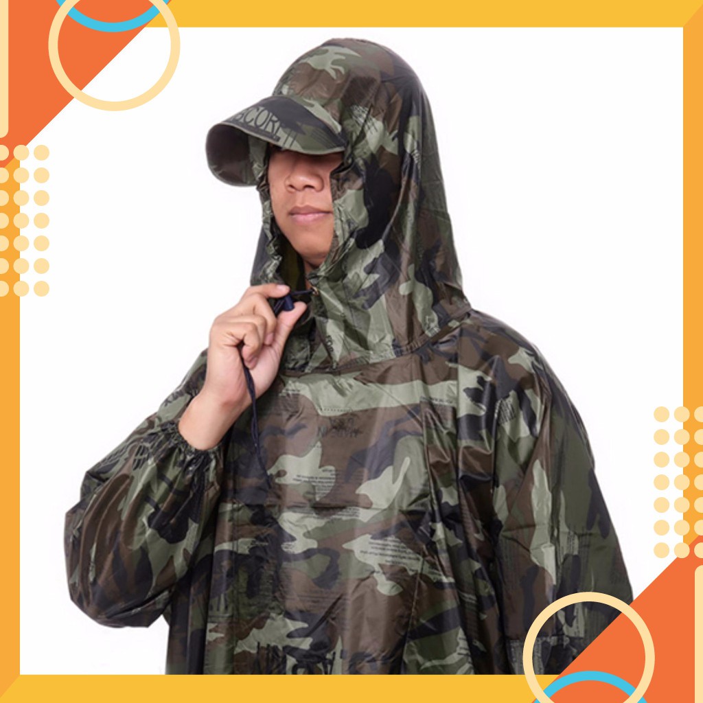 Kho Sỉ HCM-Áo Mưa Bít Phủ Kín Họa Tiết Lính Rằn Ri, Vải Dù Cao Cấp Siêu Bền 1m4-Tính Phần đầu(1m65)tuyển sỉ toàn quốc