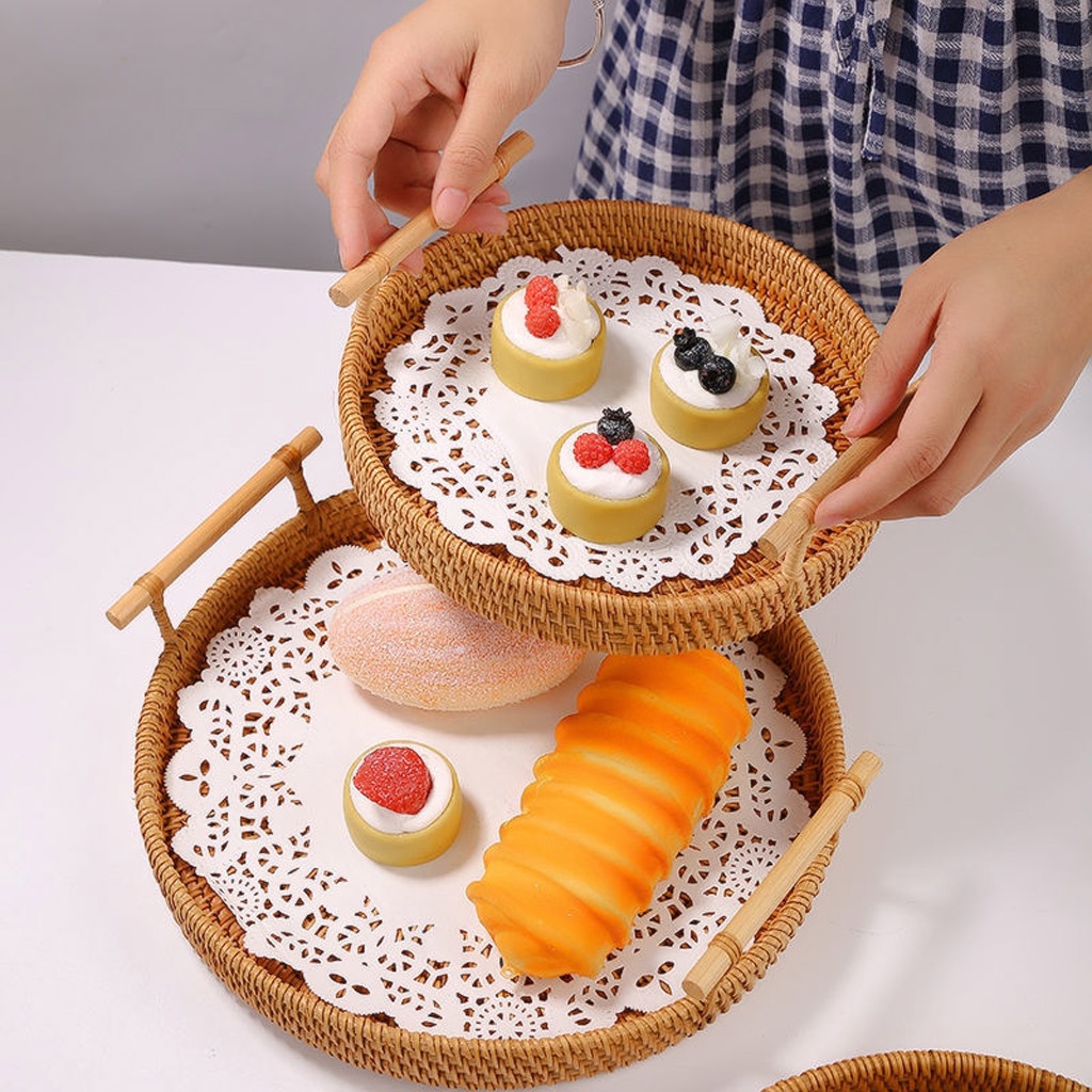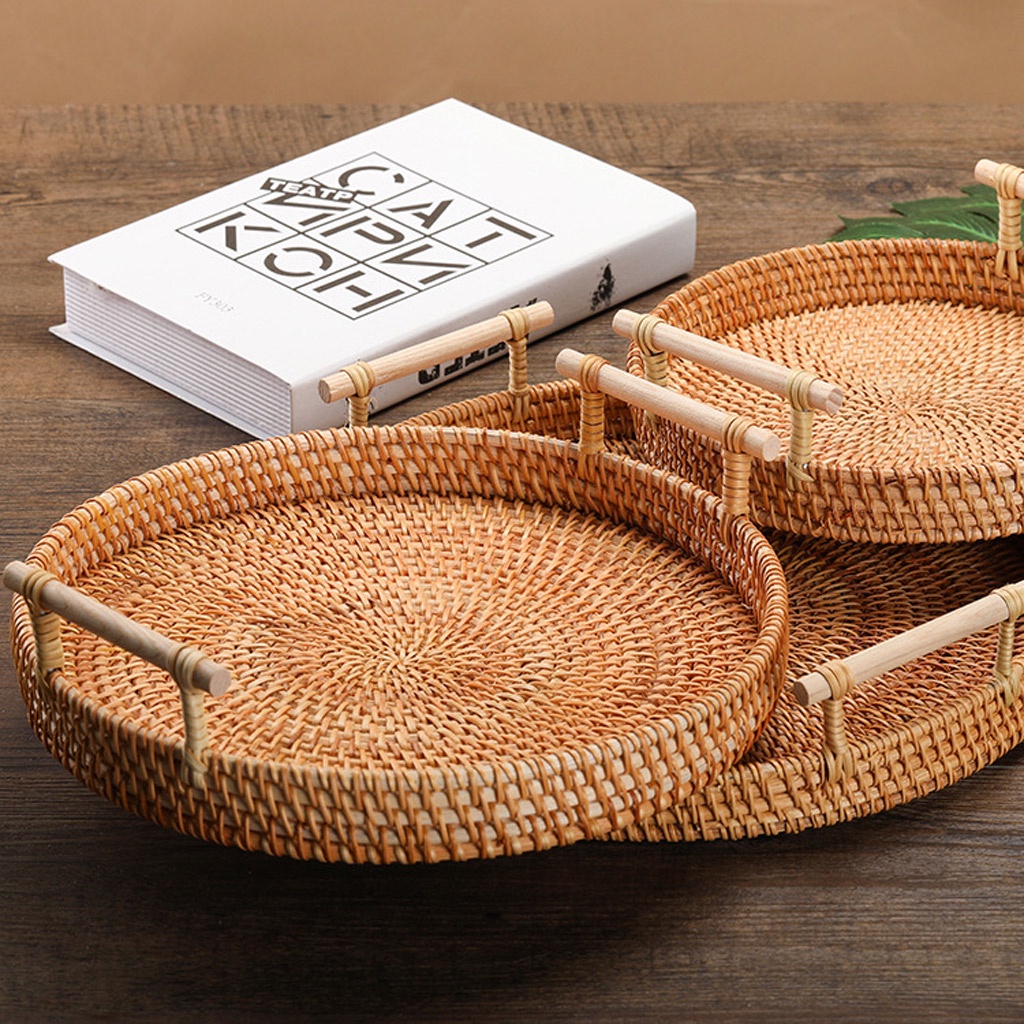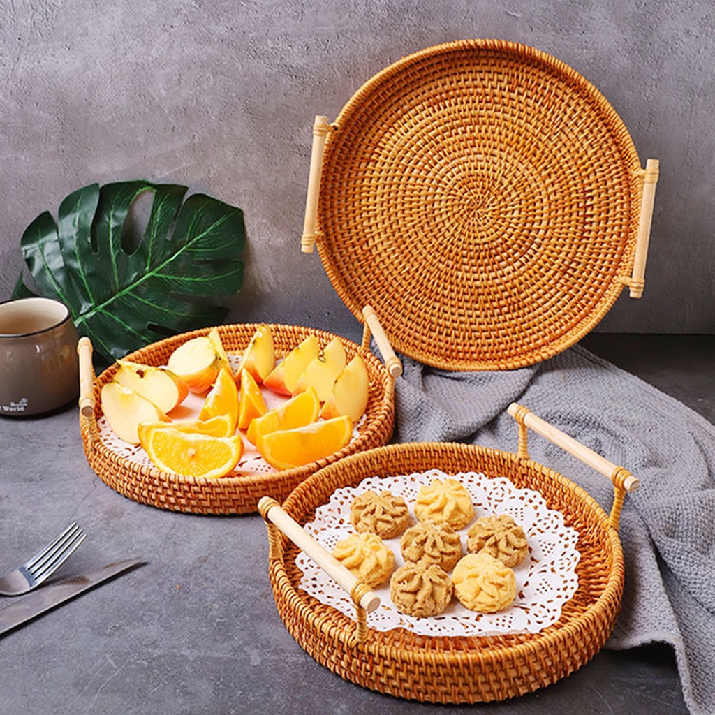 Nhà cửa & Đời sống > Bộ đồ bàn ăn > Khay, tấm lót bàn ăn || (KHO SỈ) Khay mây tròn đựng đồ, khay mây guột đi picnic, khay decor cao cấp xuất khẩuCòn hàng
