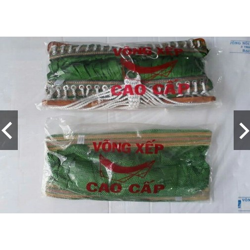 - Là loại lưới mềm 2 lớp dầy, khổ rộng, có độ đàn hồi cao, co giãn ôm sát cơ thể người dùng tạo cảm giác êm ái khi sử dụng. Hai đầu võng luôn có 2 thanh nhựa hoặc gỗ để cố định võng rất chắc chắn.